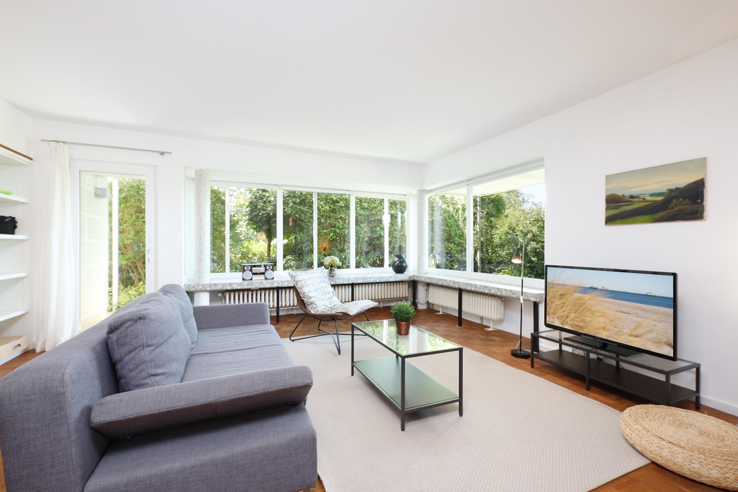 Die geschmackvoll eingerichtete, 80m² große 2-Zimmer-Ferienwohnung für max. 2 Erwachsene und 1 Kind befindet sich im Erdgeschoss eines im Bauhausstil gestalteten Hauses. Die wunderbare Lage in einer Seitenstraße bietet viel Ruhe und Entspannung und doch erreicht man das Laboer Zentrum in wenigen Gehminuten.
