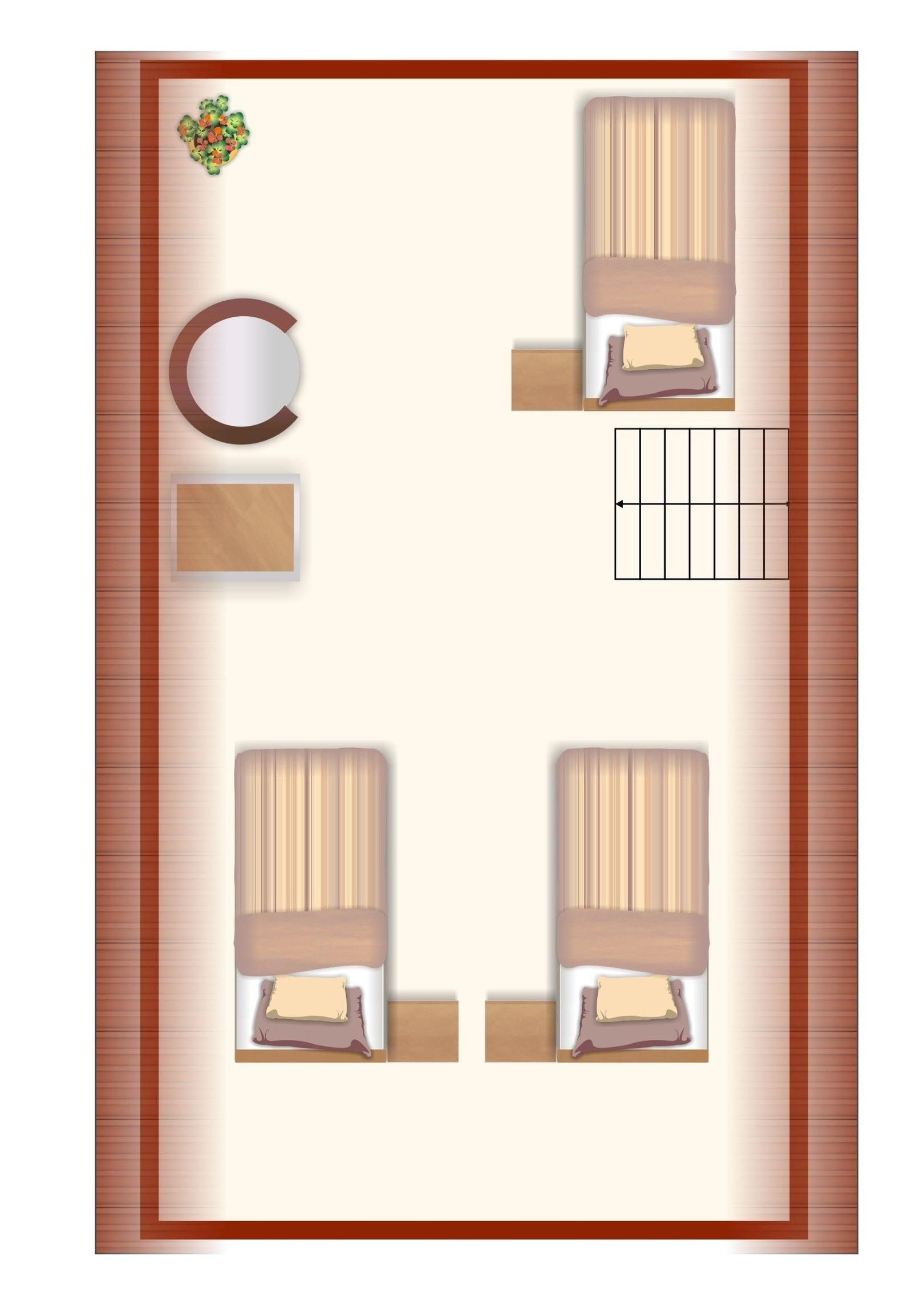 Empore: 3 Einzelbetten (je 90x200 cm), Kleiderschrank