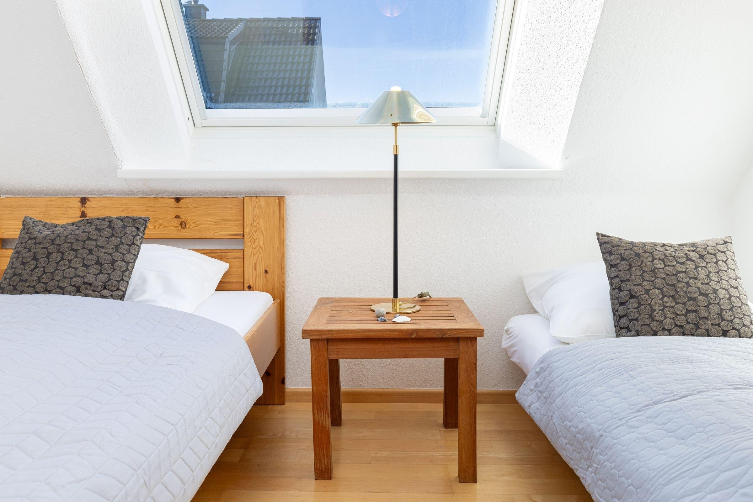 Schlafzimmer 1: 2 Einzelbetten, Kleiderschrank, Verdunkelung (Rollo)
