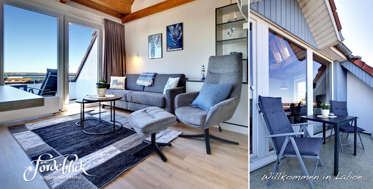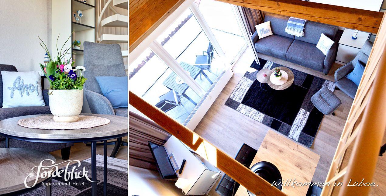 Dieser geräumige Appartement-Typ ist im Maisonette-Stil über zwei Etagen gehalten. Es ist sehr schön eingerichtet und verfügt über ein großzügiges Wohn-Esszimmer mit einer komfortablen Schlafcouch für zwei Personen, und ein separates Schlafzimmer mit Doppelbett. Mit der gut eingerichteten Küchenzeile mit Ceranfeld, Kühlschrank und Mikrowelle lassen sich leckere Speisen zubereiten. Die raumhohe Fensterfront lässt das Appartement hell und freundlich erscheinen. Schon vom gemütlichen Wohn- Essraum aus haben Sie einen guten Blick auf die Ostsee. Über eine Wendeltreppe erreichen Sie die Galerie Dort befindet sich ein bequemes Doppelbett. Auf dem gemütlichen Dachbalkon werden Sie sich wohlfühlen. Von dort aus haben Sie einen wunderschönen Blick auf die Ostsee mit den vorbeiziehenden Schiffen. Genießen Sie von dort zum Tagesausklang den Sonnenuntergang. Sie werden begeistert sein. Zur weiteren Ausstattung gehört: Kabel-TV, Radio und kostenfreies WLAN mit einfachen Zugang (nur ein Klick)