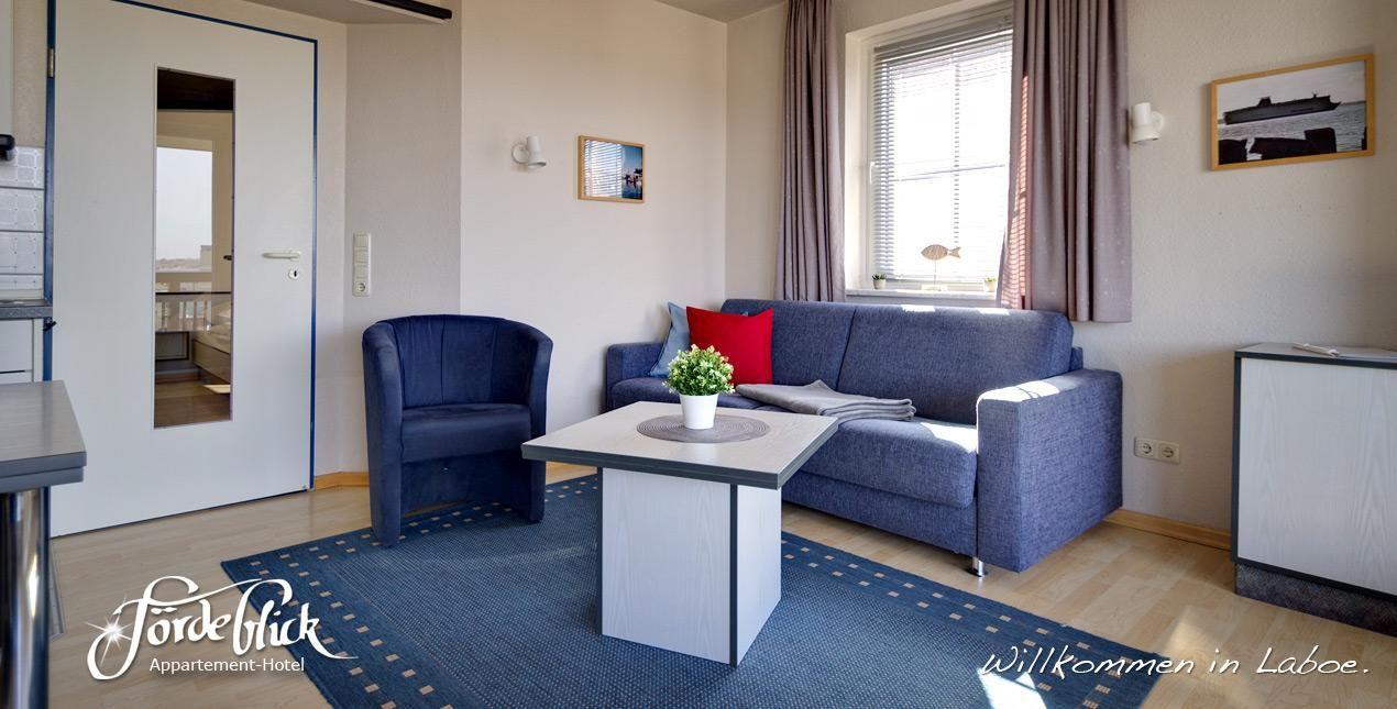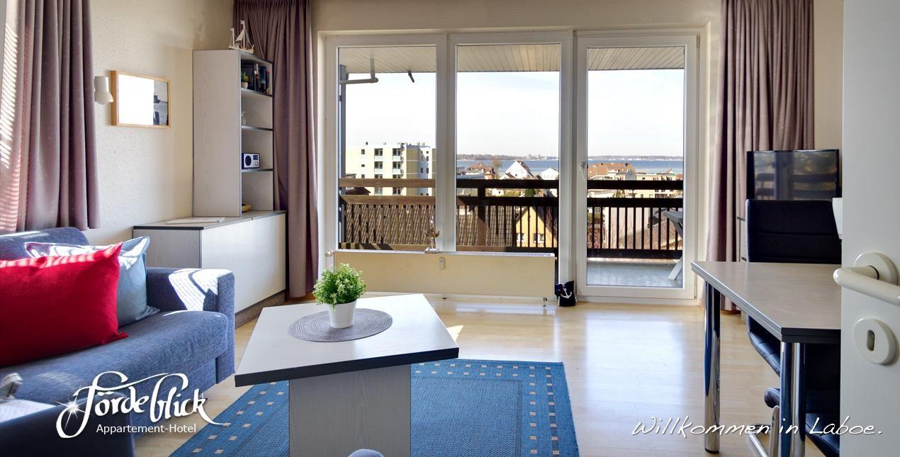 mit einem schönen Ausblick auf die Kieler Förde. Sie können dort viele vorbeifahrende Schiffe beobachten. Das gemütliche Appartement hat eine große Fensterfront (2x3m) zum Balkon und ist dadurch sehr hell und freundlich. Es gibt ein separates Schlafzimmer. Auf der bequemen Schlafcouch im Wohn-Esszimmer haben 2 weitere Personen Platz. Das Appartement verfügt über eine Küchenzeile sowie ein Bad mit Dusche und WC. Die geräumige Diele verfügt über große Einbauschränke mit viel Platz für ihre Kleidung. Kabel-TV und Radio stehen zu ihrer Verfügung. Der Zugang zum leistungsstarken WLAN ist einfach und kostenlos.Auf dem großen Balkon können Sie den Tag ausklingen lassen und je nach Jahreszeit den Sonnenuntergang genießen.