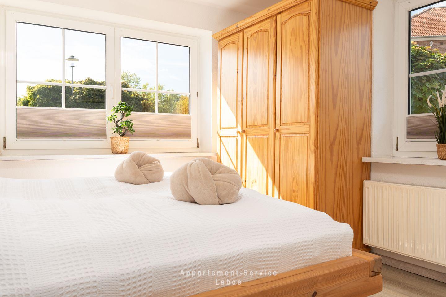 Im Schlafzimmer erwartet dich ein kuscheliges Doppelbett, das dich nach einem erlebnisreichen Tag an der Ostsee willkommen heißt. Hier kannst du zur Ruhe kommen und von den nächsten Abenteuern träumen. Das moderne Badezimmer mit Dusche und WC ist frisch, freundlich und genau das, was du für einen gelungenen Start in den Tag brauchst.