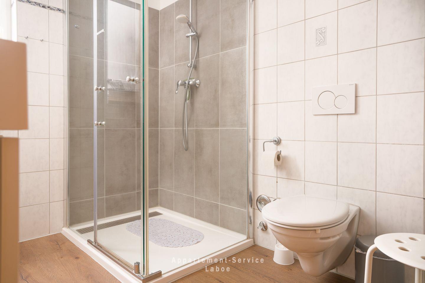 Das moderne Badezimmer ist mit einer bodengleichen Dusche ausgestattet – bequem, barrierearm und hochwertig eingerichtet. Für entspannte Kochabende bietet dir die offene Küche alles, was du brauchst: Cerankochfeld, Backofen, Mikrowelle, Spülmaschine und Kaffeemaschine. Am großen Esstisch ist Platz für gemeinsame Mahlzeiten, Kartenspiele oder Urlaubspläne. Die gemütliche Sofaecke mit Sessel lädt zum Ausruhen ein – drei Fernseher und eine HiFi-Anlage sorgen bei Bedarf für Unterhaltung.
