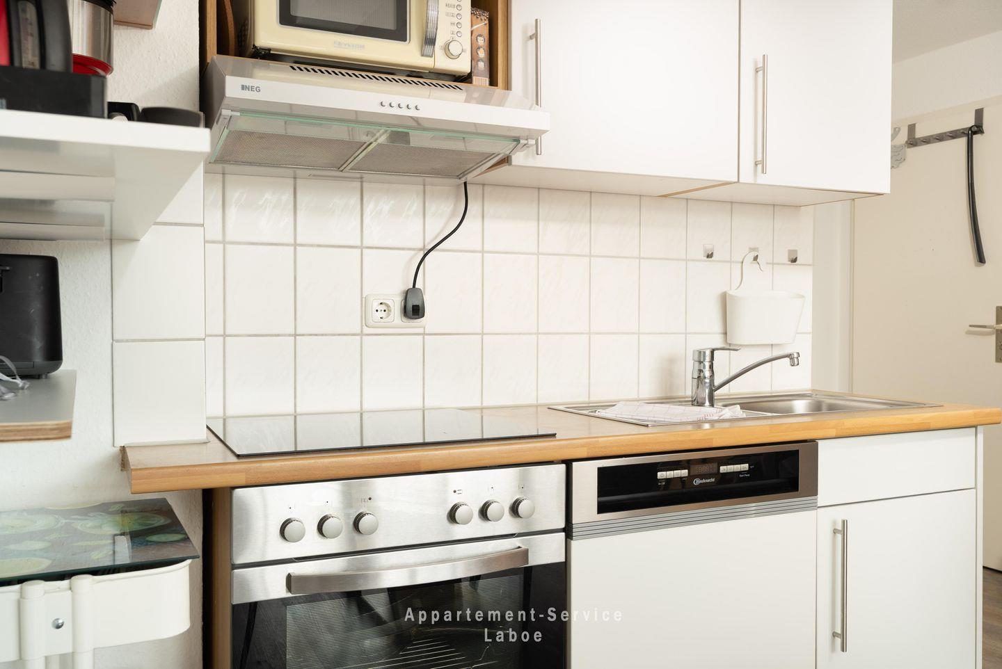 Mit zwei separaten Schlafzimmern, einem offenen Wohn- und Essbereich und einem eigenen Balkon ist diese Ferienwohnung ein Ort, an dem du dich vom ersten Moment an wohlfühlen kannst. Die Einrichtung ist freundlich, praktisch und durchdacht – alles da, was du für entspannte Urlaubstage brauchst. Die voll ausgestattete Küche mit Ceranfeld, Backofen und Mikrowelle macht Selbstversorgern das Leben leicht. Und wenn du mal keine Lust auf Kochen hast: Gute Restaurants, Cafés und Bäckereien findest du direkt ums Eck.