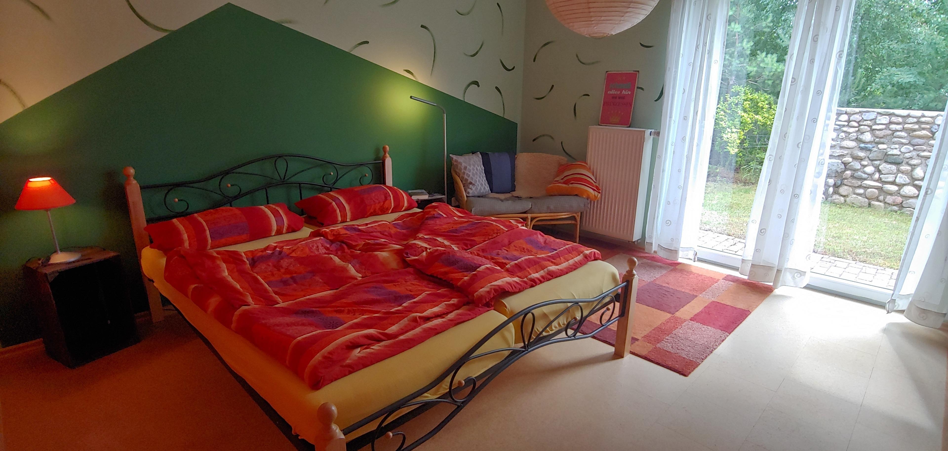 - ein Schlafzimmer mit Bett 1.60x2.00 m und 3-türigem Kleiderschrank