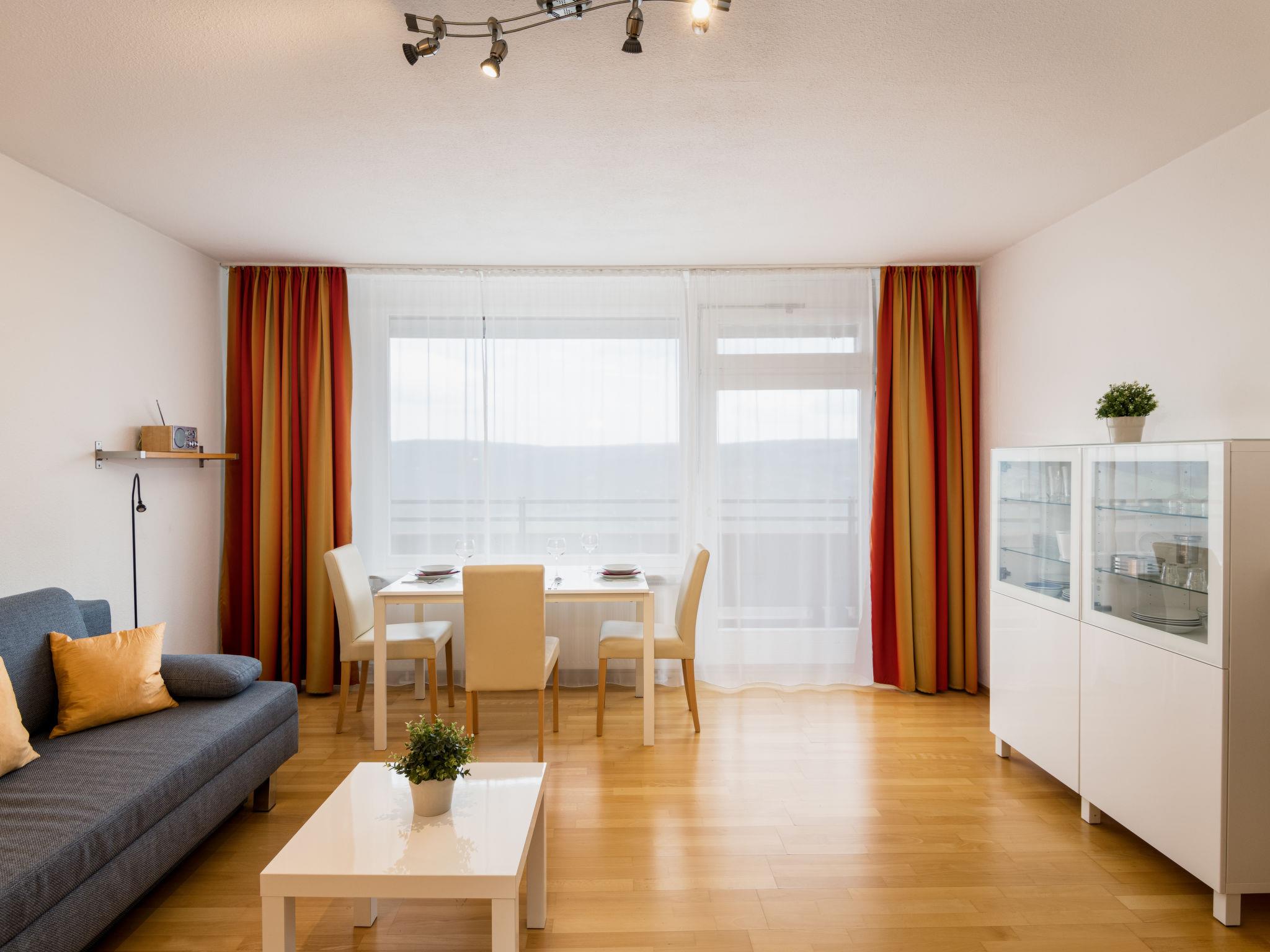 "Panoramablick (A1001)", 2-room apartment 56 m2 on 10th floor, east facing position. Living/dining room with 1 double sofabed (145 cm, length 195 cm), satellite TV (flat screen), radio. Exit to the balcony. 1 room with 1 double bed (2 x 100 cm, length 200 cm). Kitchenette (oven, dishwasher, 4 ceramic glass hob hotplates, toaster, kettle, electric coffee machine). Bath/shower/WC. Balcony furniture. Very beautiful view of the countryside. Facilities: washing machine. Internet (WiFi, free). Please note: non-smokers only. Smoke alarm.