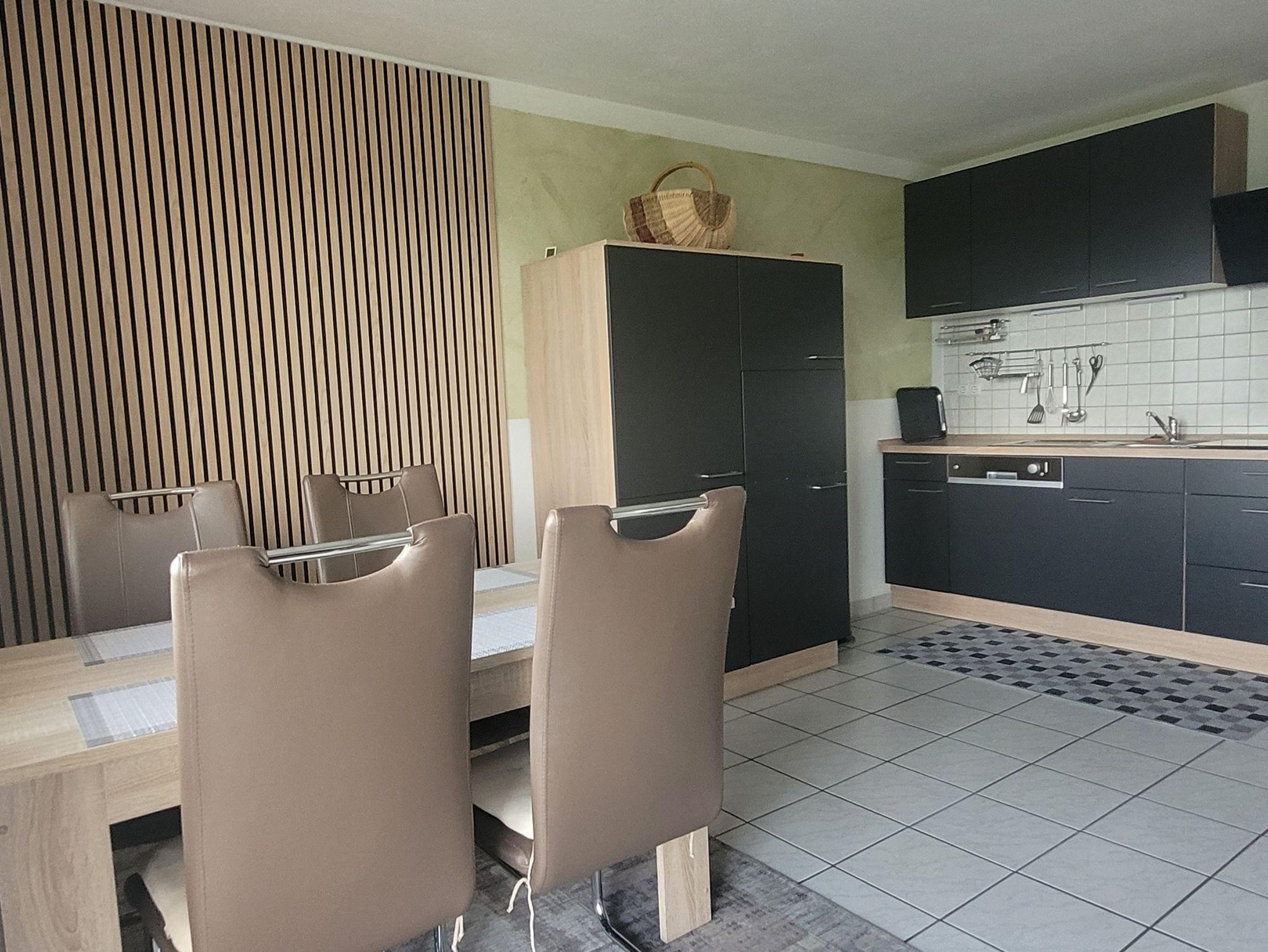 Sehr gemütliche, helle und freundliche 4****Sterne Ferienwohnung: im Erdgeschoß ca. 120m² gr. Wohnküche (mit vielen elektr. Geräten, z. B. u.a. Spülmaschine, Mikrowelle, Wasserkocher, Mixer, Kühl,-Gefrierschrank, u.v. mehr). 2 getrennte Schlafzimmer, mit 1x Doppelbett und 2 Einzelbetten Zwei Badezimmer mit Dusche/WC, Föhn, Schminkspiegel Sat-TV, Telefon, Radio gr. Wohnzimmer (zusätzl. Schlafgelegenheit - franz. Bett für 2 Pers.) große, möbilierte Terrasse mit Markise Freisitz mit Pavilion und Feuerstelle kl. Kinderspielplatz mit Schaukel Parkplatz am Haus Wanderkarten und Prospekte von heimischen Produkten und Veranstaltungen. Es sind leider keine Haustiere gestattet.