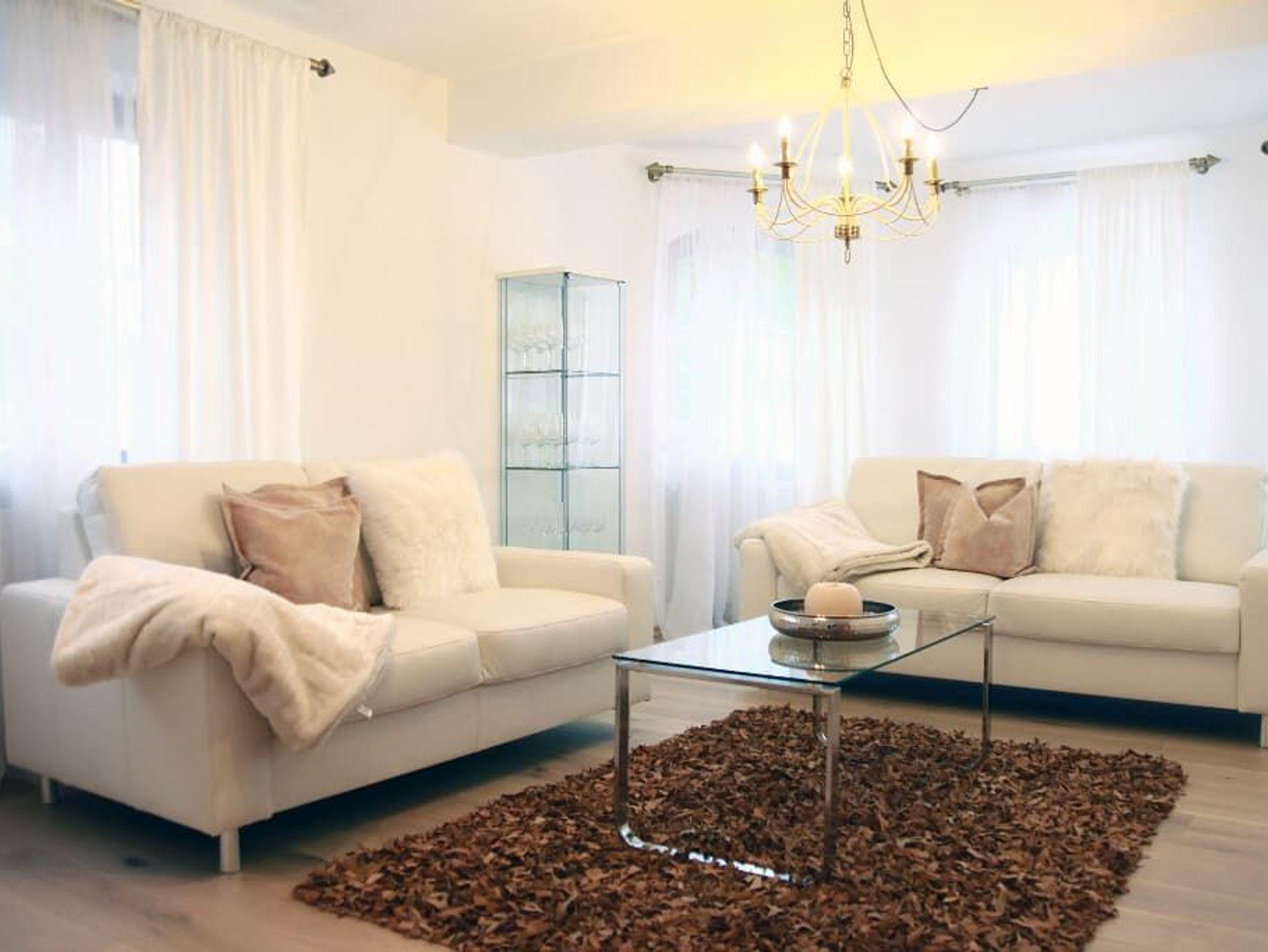 Auf 80 qm verteilen sich in Wohnung 1, Haus Sonnenhang, zwei Schlafzimmer mit Boxspringbetten, zwei Badezimmer mit Dusche und WC, ein Wohnzimmer mit Sat-Flat-TV und Stereo-Set sowie eine Küche mit Essbereich und Küchenzeile/Spülmaschine. Die Wohnung liegt im Erdgeschoss und verfügt über eine Sonnenterrasse. Es besteht ein direkter Zugang zum Garten. Eine Belegung mit bis zu 4 Personen ist möglich, über Zustellbetten kann die Kapazität erweitert werden.