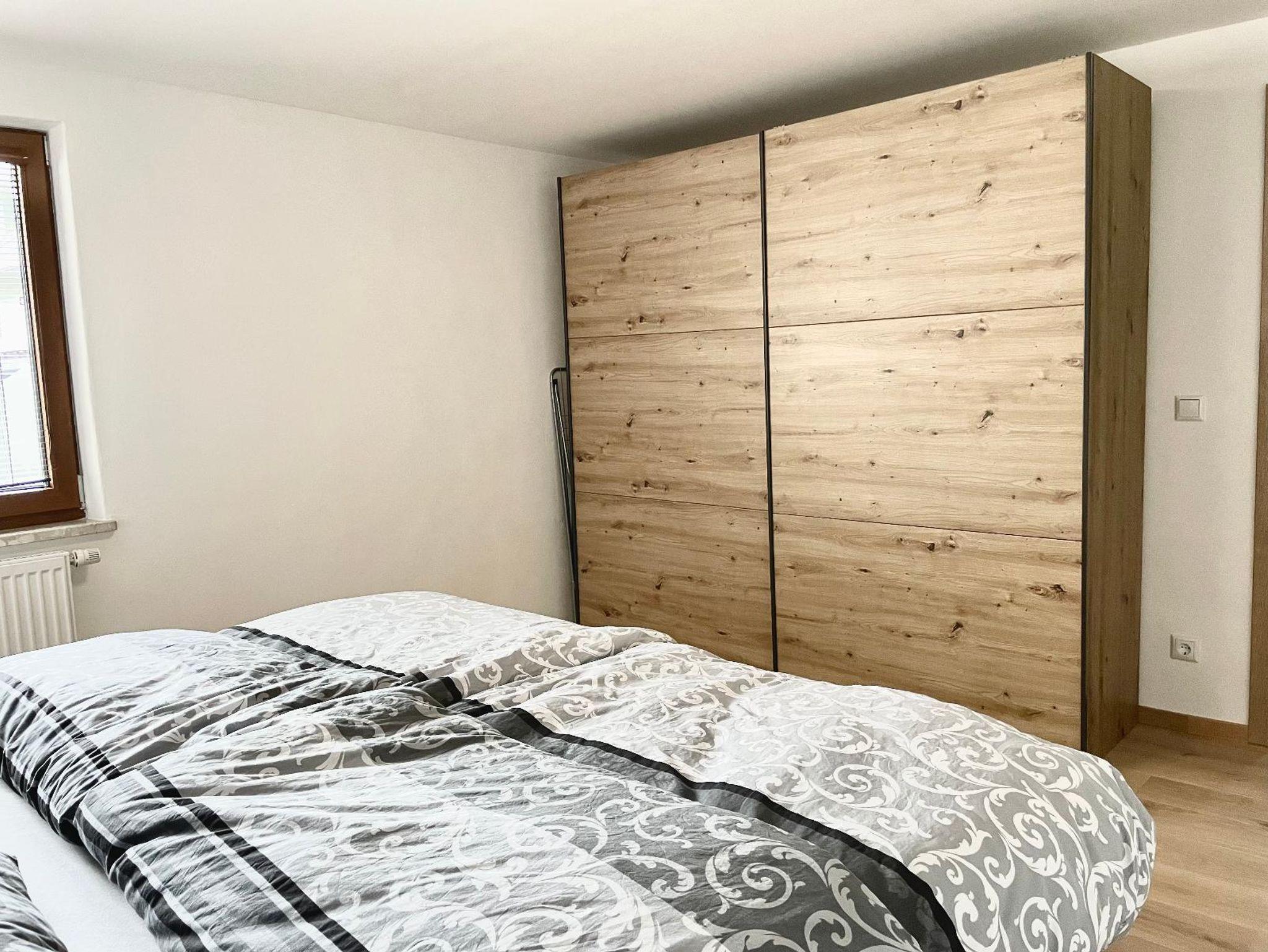 Die Wohnung verfügt über 2 getrennte Schlafzimmer, eins davon mit Doppelbett, das andere mit zwei getrennt stehenden Betten, sowie jeweils ein großer Kleiderschrank. Sie bietet somit Platz für 4 Personen. Ein Babybett kann bei Bedarf im Elternschlafzimmer hinzugestellt werden.
