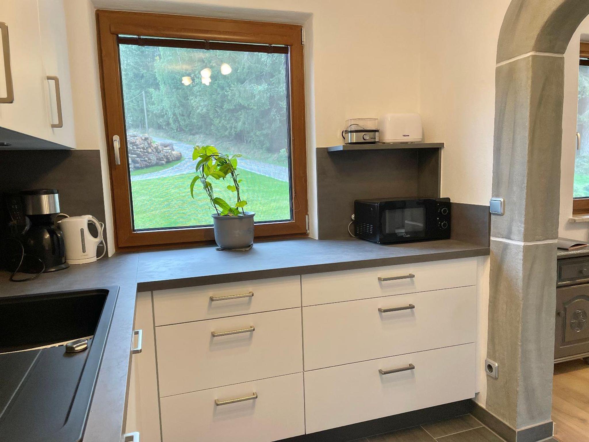 Die neue und sehr gut ausgestattete Küche mit Geschirrspüler, Kühlschrank inkl. Gefrierfach, Herd, Backofen, Mikrowelle, Dunstabzug, Wasserkocher, Toaster und Kaffeemaschine lässt keine Wünsche offen.