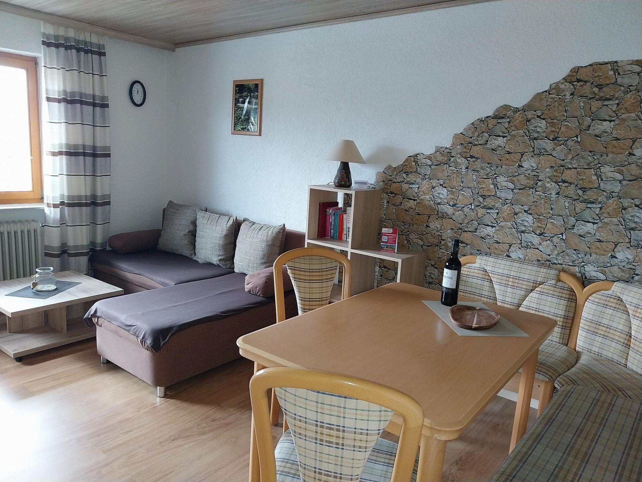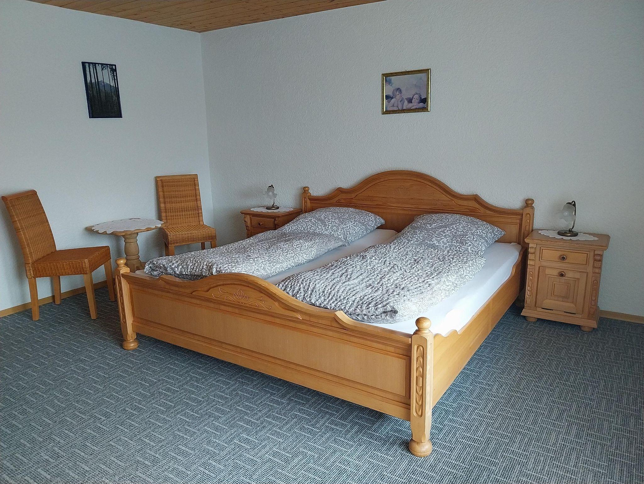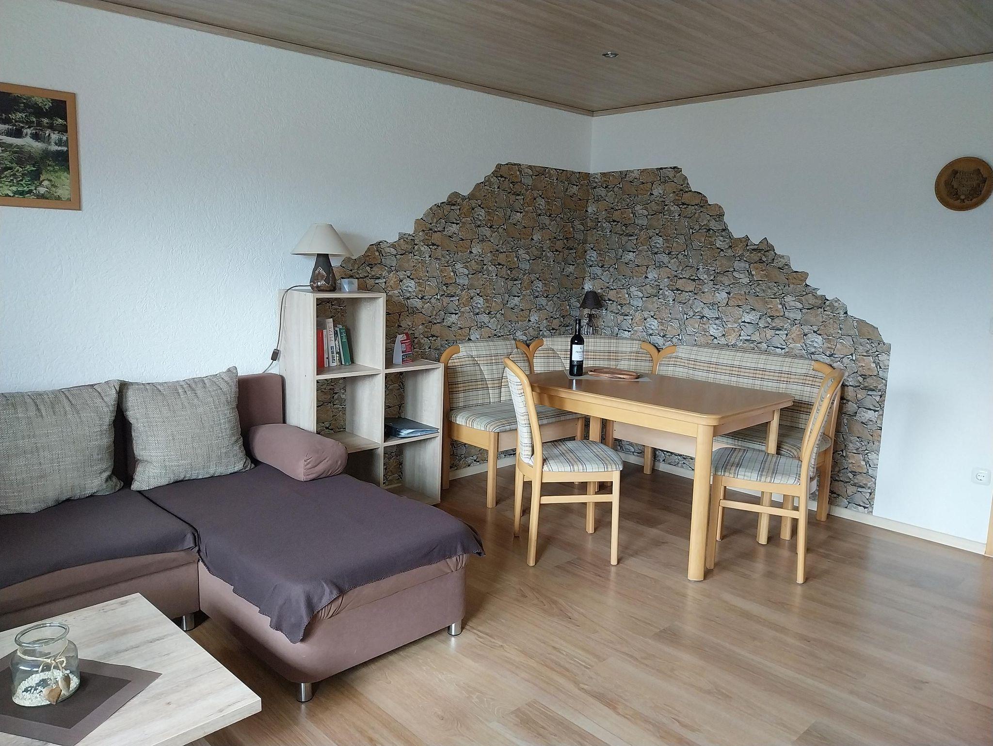 Unsere Ferienwohnung mit Terrasse zur Südseite bietet direkten Zugang zum großen Garten und einen traumhaften Panoramablick!. Der Wohnraum mit Küchenzeile, Essecke und Sitzecke, sowie die beiden Schlafzimmer (jeweils mit Doppelbett), das Bad mit Dusche und ein separates WC bieten Platz für 1-4 Personen.