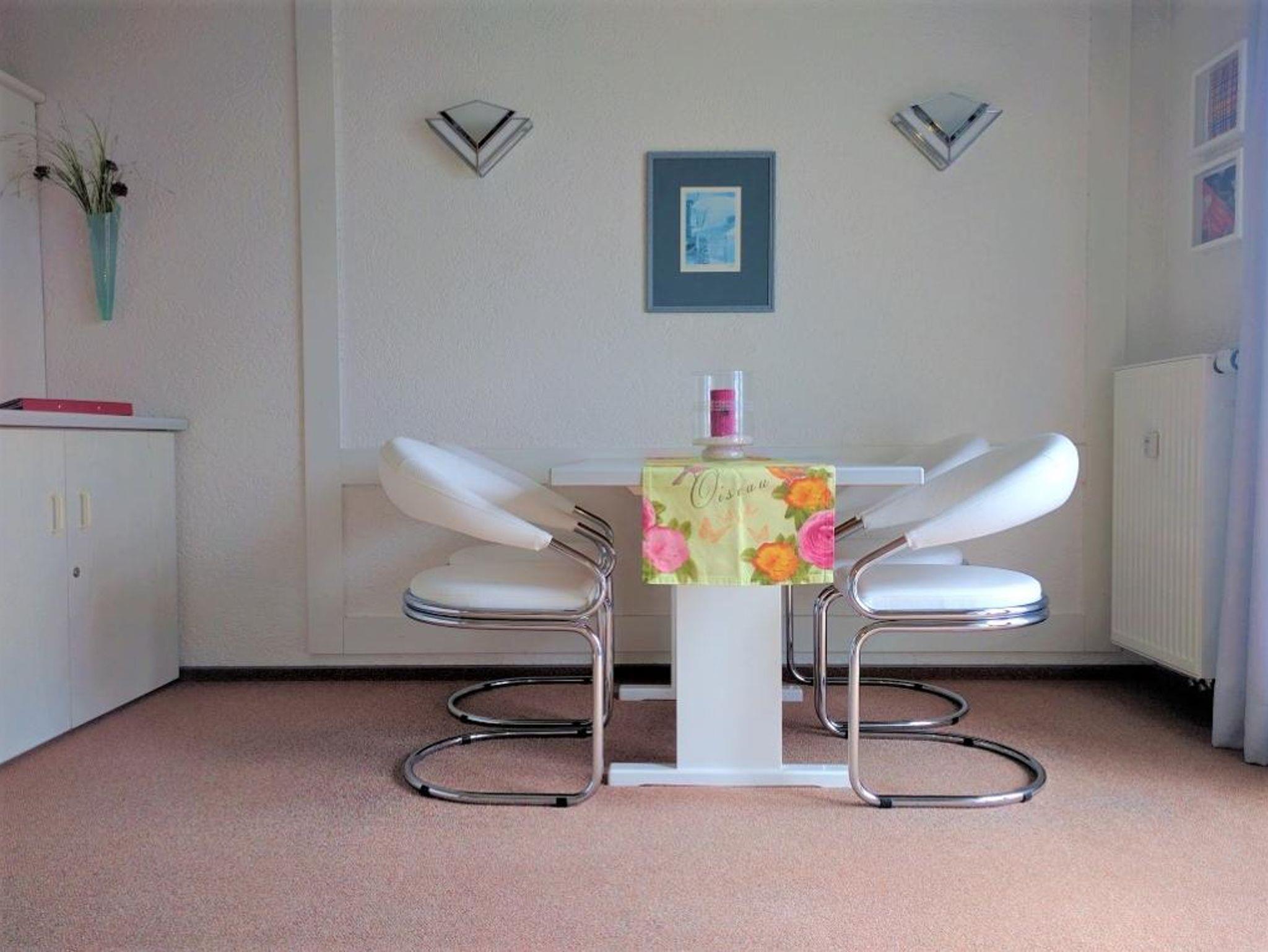 Das 2-Zimmer Appartement ist modern und komfortabel eingerichtet (47 qm, Südbalkon, für max. 4 Personen). Eine bis zum Giebel verlaufende Decke gibt ein sehr angenehmes Raumgefühl. Dadurch ist die Trennwand zwischen Wohn- u. Schlafzimmer im oberen Teil nicht vollständig geschlossen.
