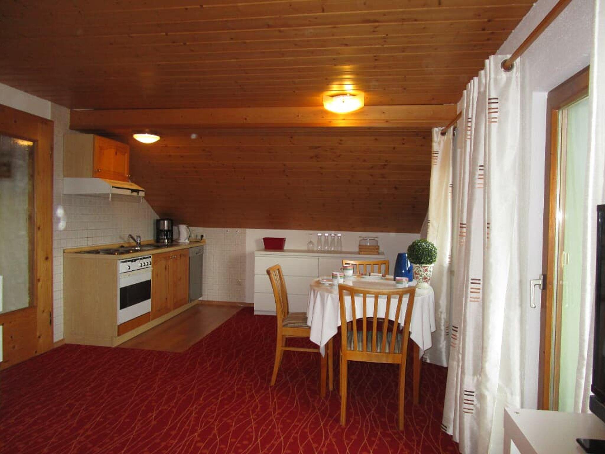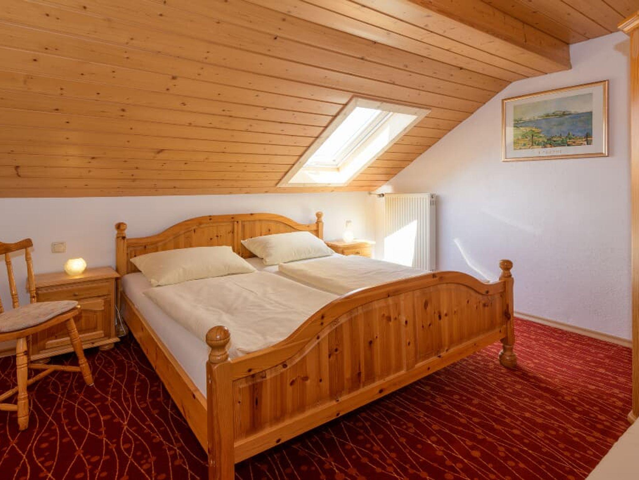 Die gemütliche, neu renovierte Ferienwohnung im Dachgeschoß (Mansarde) für 3 Personen (zusätzliches Babybett möglich) besteht aus 1 Doppel-Schlafzimmer, 1 Einzelzimmer, sehr gemütlichem Wohnraum mit SAT-TV, W-LAN, Radio, Couchgarnitur und Essecke mit Küchenzeile, Spülmaschine, Mikrowelle, Kaffeemaschine, Wasserkocher und Toaster, Ballkon, Bad und sep. WC. Auf Wunsch - Brötchenservice! Für Nichtraucher!