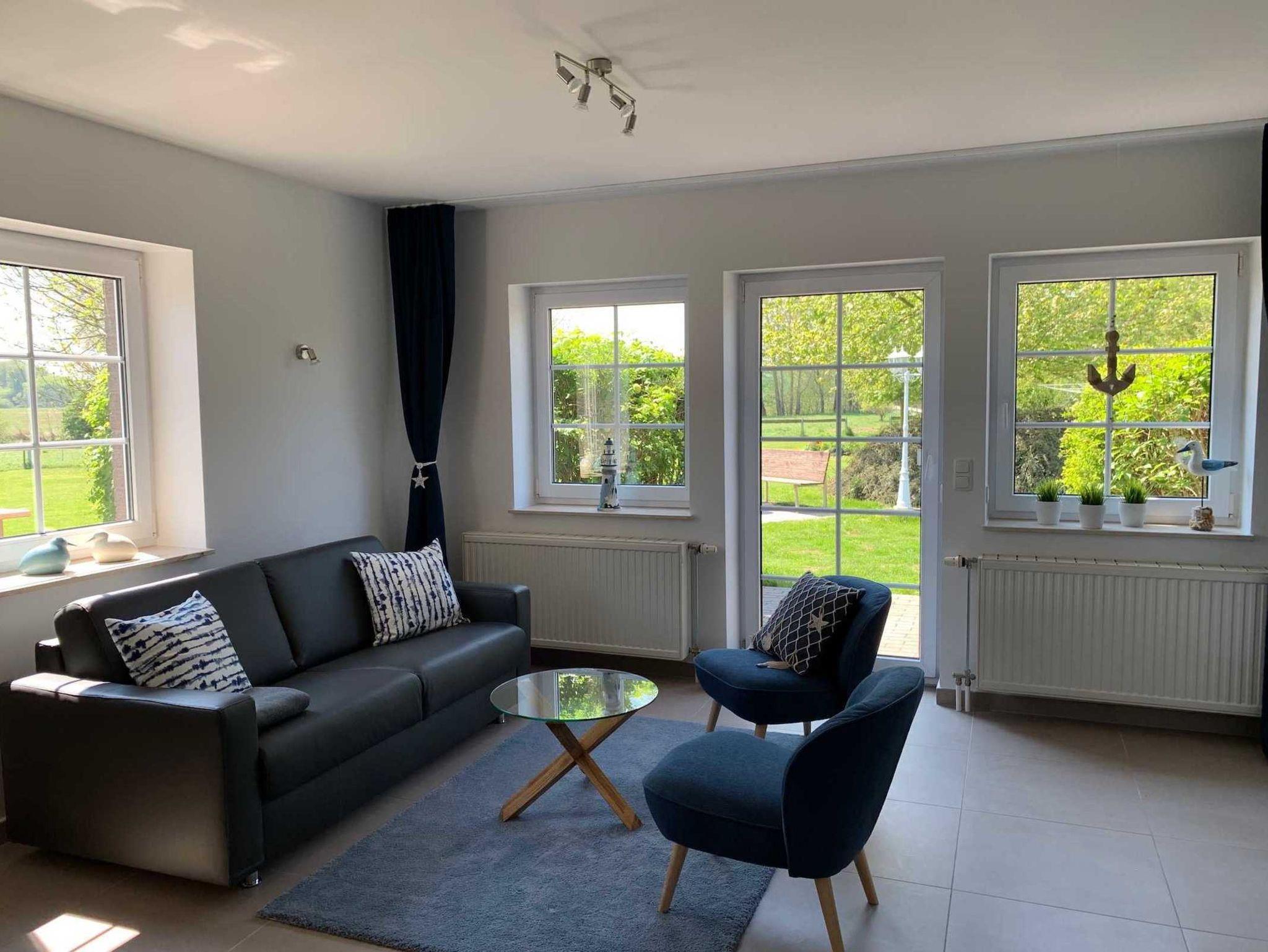 Die große Gartenanlage fügt sich harmonisch in die Landschaft ein und bietet viel Platz zum Erholen, Entspannen und Spielen. Im Garten befinden sich Terrassen mit Sitzgruppen, Strandkörbe, eine Liegewiese, Liegestühle und Sonnenschirme. Außerdem gibt es einen Grillplatz und einen Kinderspielplatz.