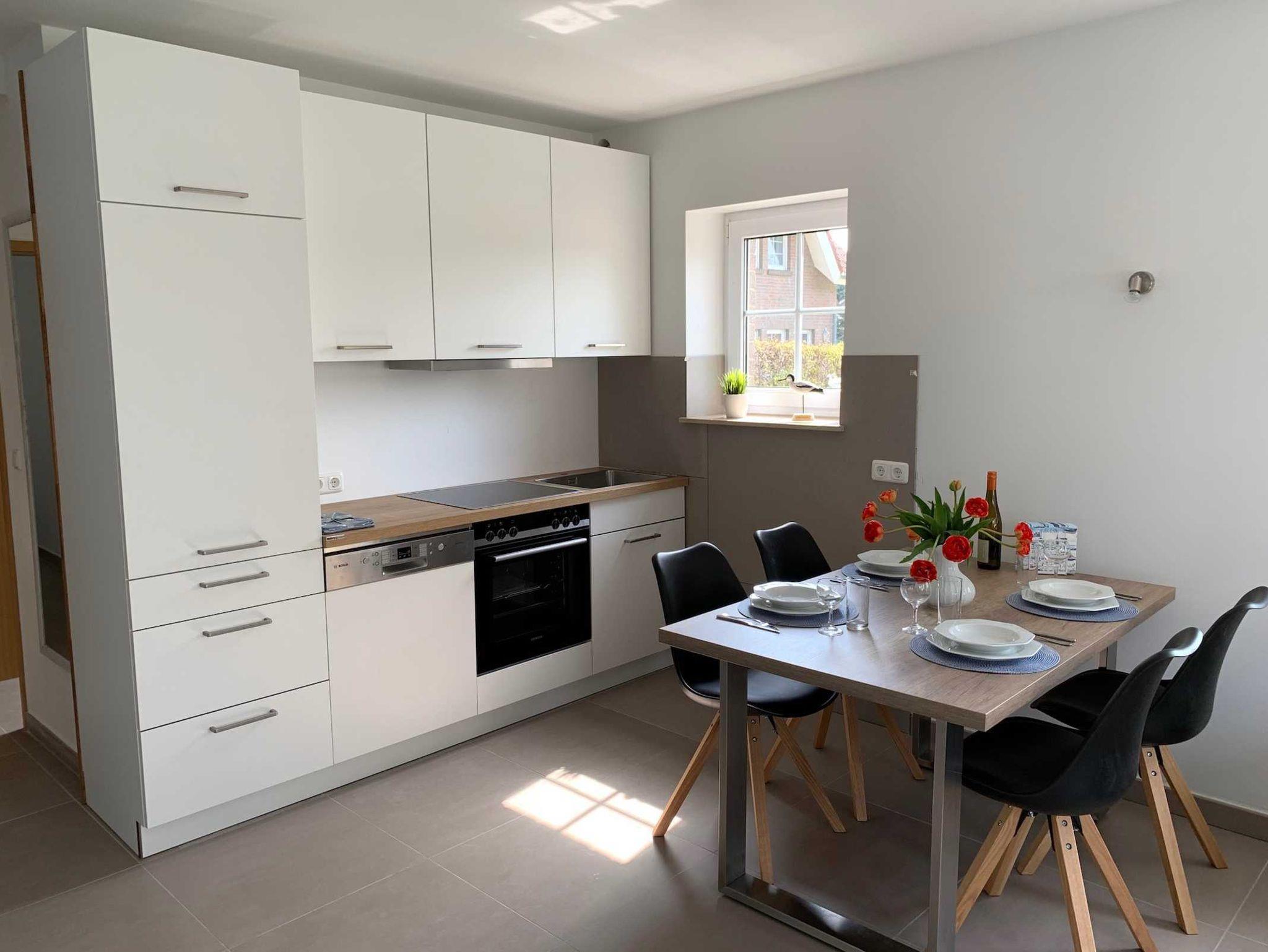 • Cerankochfeld, Backofen, Spülmaschine, Kühlschrank mit Gefrierfach, Kaffeemaschine, Wasserkocher, Toaster