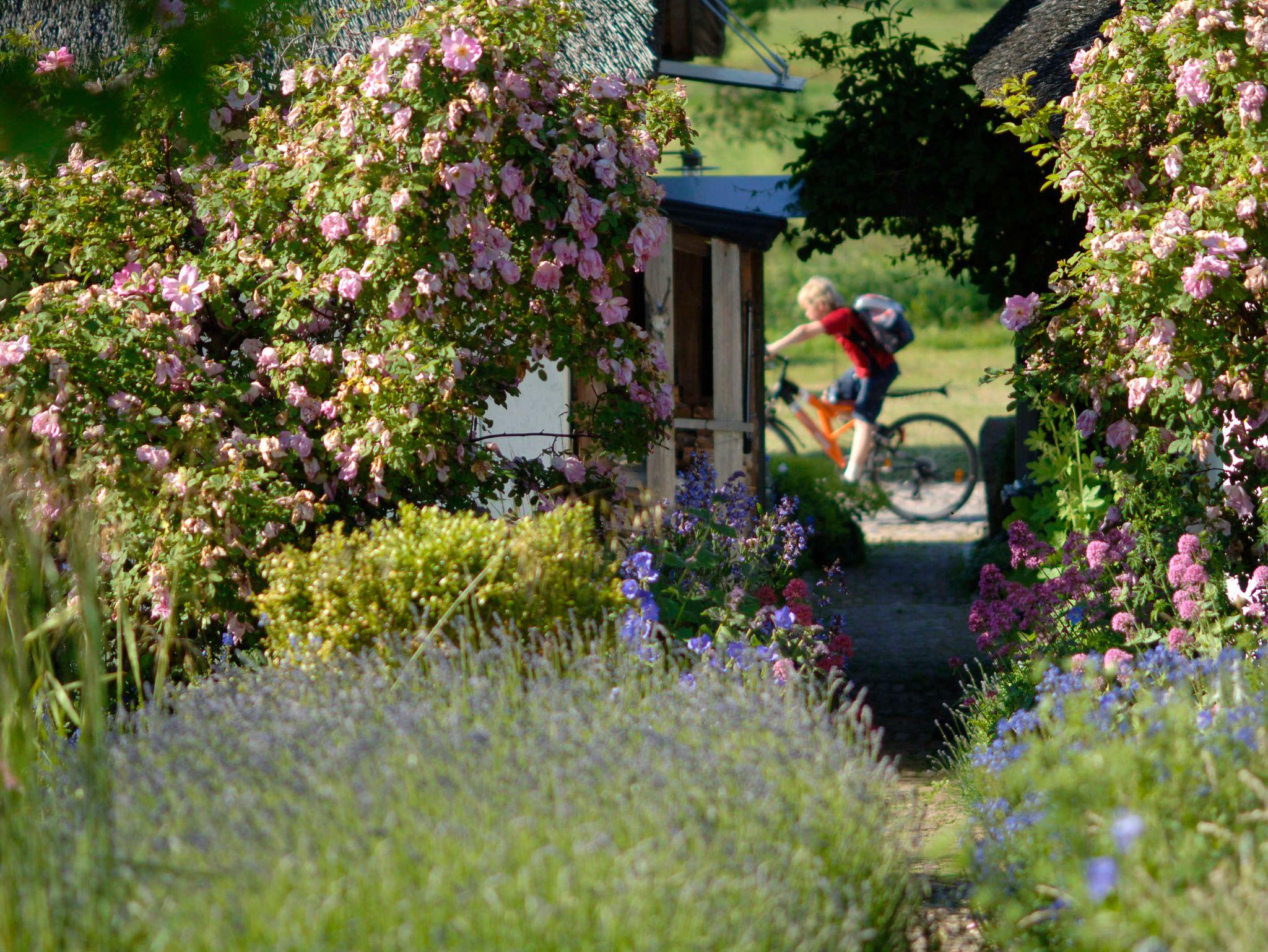 Zum Objekt gehört auch ein wunderschöner Garten, den die Gastgeber mit viel Liebe und Sinn für Details angelegt haben. Aus diesem Grund tragen die Ferienwohnungen auch Blumennamen! Für Gartenliebhaber also sicher eine erste Adresse! Grillen ist auf dem Grundstück nicht gestattet. Parkplätze stehen direkt am Haus zur Verfügung. Für Ihre mitgebrachten Fahrräder steht eine Unterstellmöglichkeit zur Verfügung. Leihräder werden auf Wunsch direkt zum Objekt gebracht. Ein Spielplatz ist direkt am Strand vorhanden (Rutsche, Tischtennisplatte, Schaukel usw.). Auch ist genug Platz zum Drachen steigen lassen oder einfach mal nur Muscheln oder Bernstein sammeln.