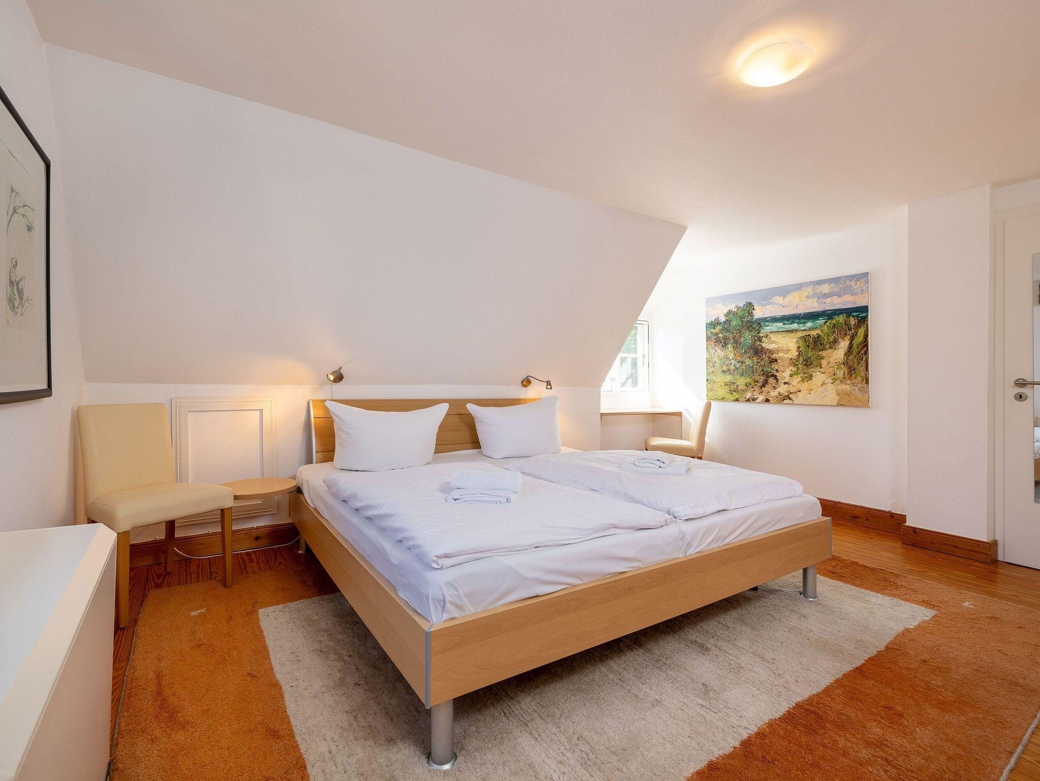 Ein paar Treppenstufen höher finden Sie im Dachgeschoss Ihre beiden Schlafzimmer mit jeweils einem komfortablen Doppelbett. Hier werden Sie himmlisch nächtigen. Durch die bei Bedarf geöffneten Fenster ? versehen mit Insektenschutzgittern ? kommt im Sommer eine kühle Brise vom nicht weit entfernten Meer. Beide Schlafzimmer verfügen auch über einen zusätzlichen Fernseher. Ein weiteres Duschbad/WC rundet diese Etage ab.