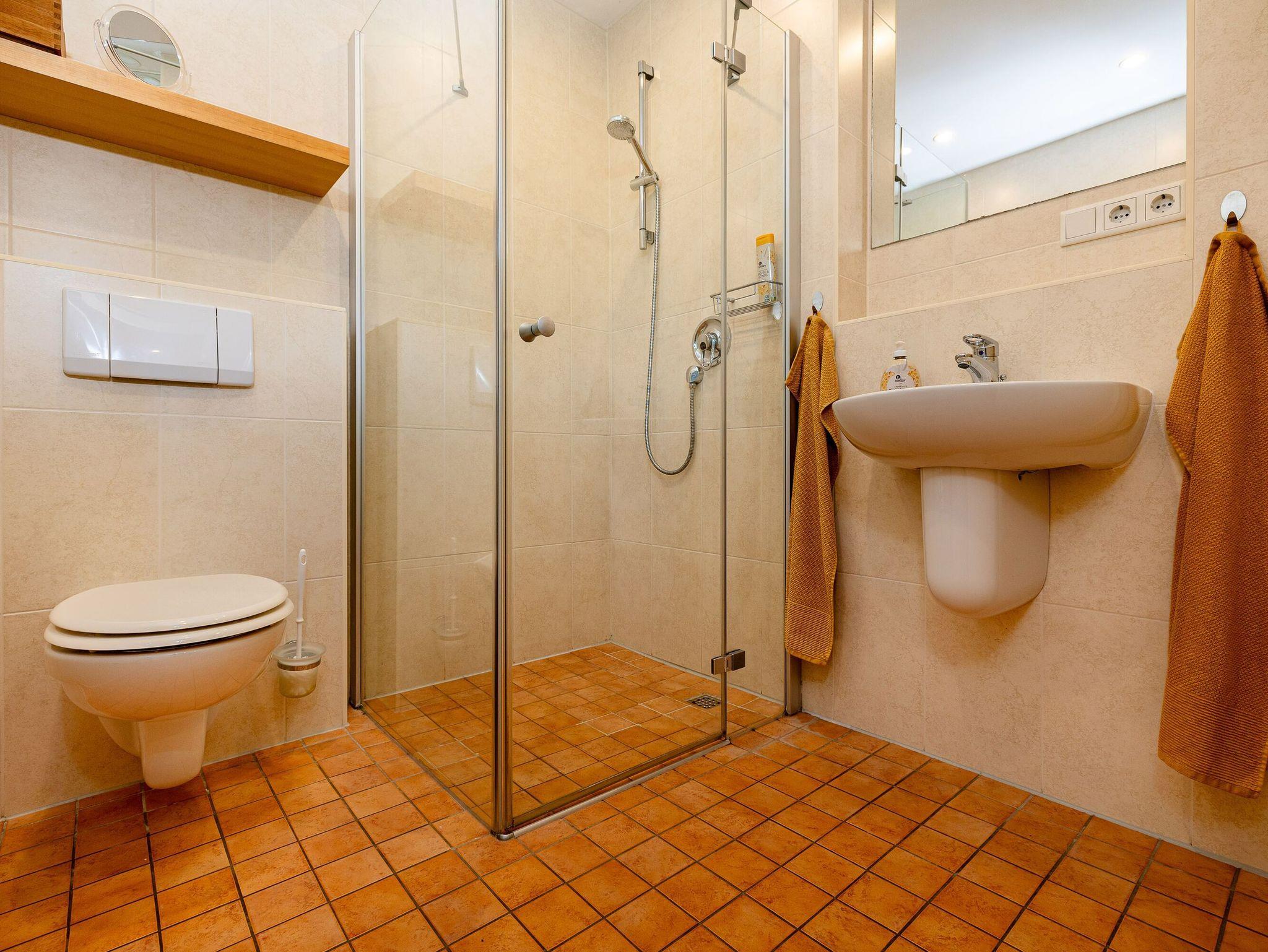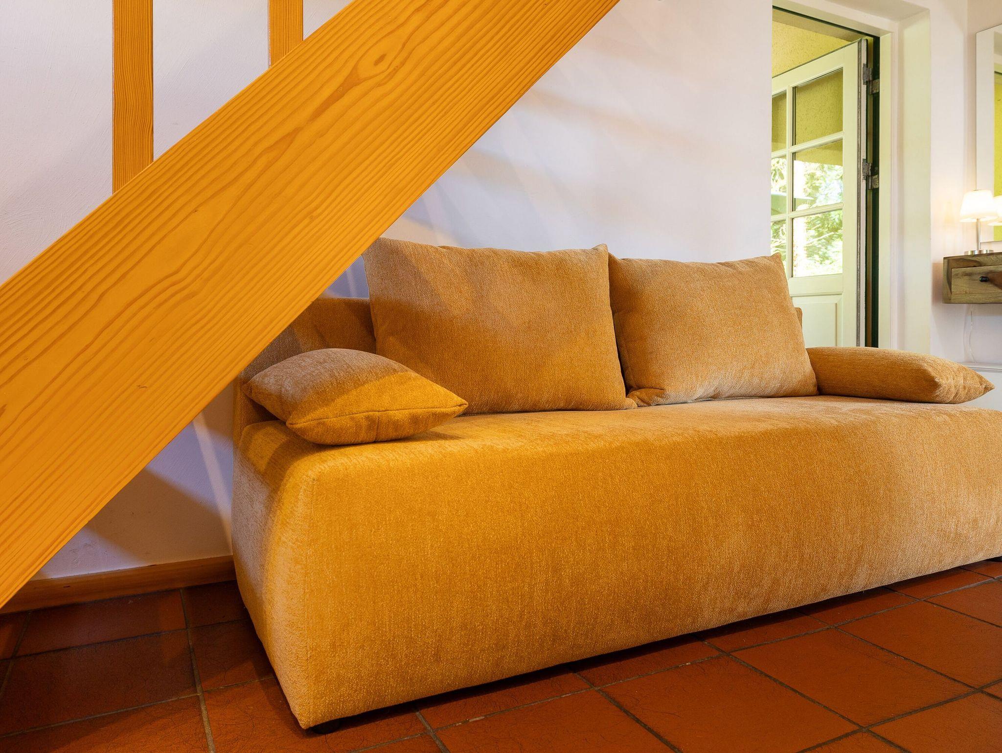 Im Erdgeschoss gibt es außerdem einen Flur mit Garderobe, eine Konsole mit großem Spiegel, ein Duschbad/WC, ein ausziehbares Schlafsofa (1,40 x 2,00m) und einen Hauswirtschaftsraum mit kostenfrei nutzbarer Waschmaschine nebst Bügel- und Reinigungsgeräten.