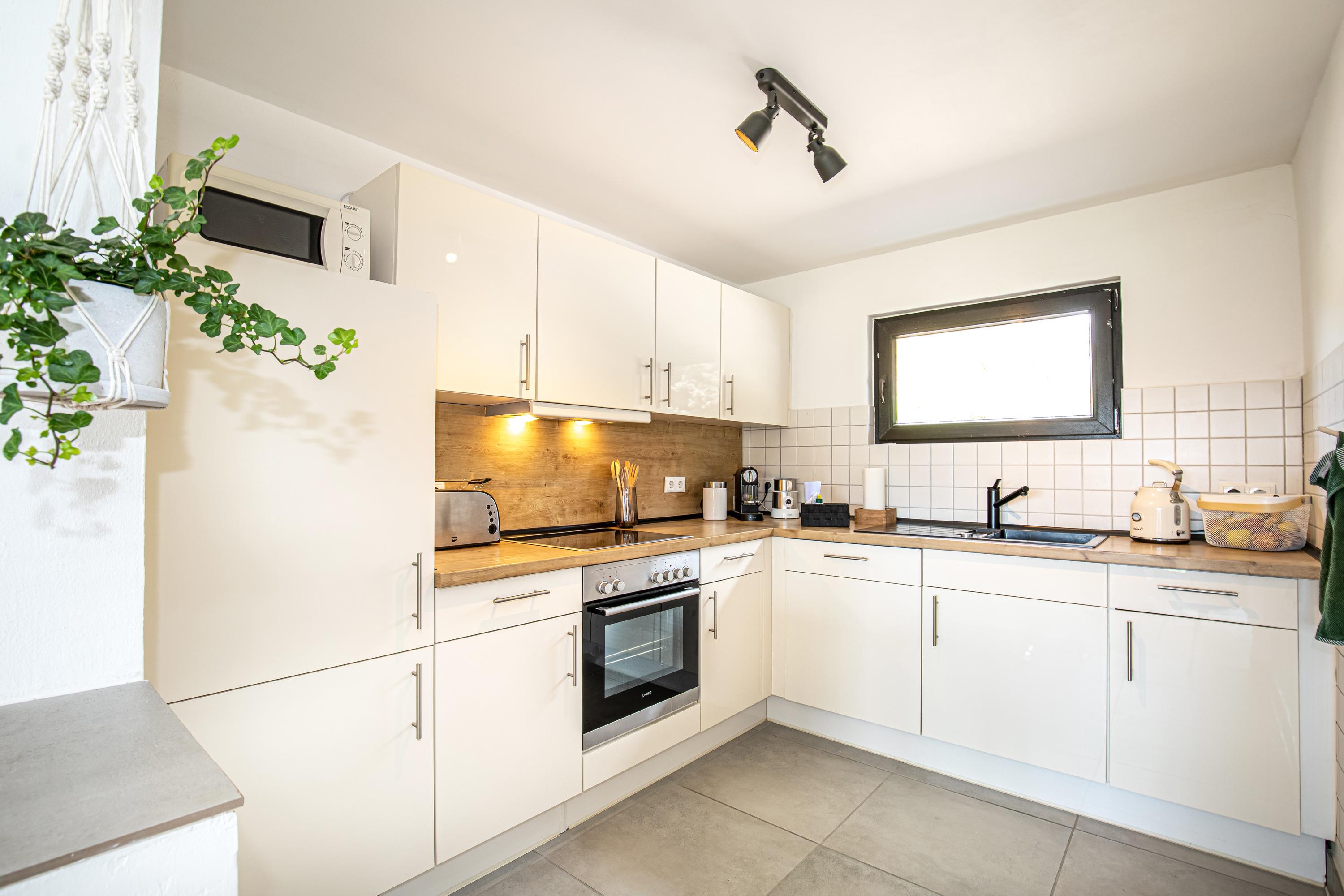 Dieses wunderschöne Domizil umfasst rund 105qm Wohn-, und Nutzfläche und ist für bis zu 5 Personen ausgelegt. Überall ist die Liebe zum Detail zu spüren, die die Eigentümer bei der Einrichtung des Objektes investiert haben. Ein absoluter Blickfang ist beispielsweise der lichtdurchflutete Wohnbereich, welcher sich über 2 Etagen erstreckt. Vom oberen Teil, welcher mit einer gemütlichen Lese-, und Fernsehecke ausgestattet ist, lässt sich ein einmaliger Blick auf die alten Deckenbalken des Hauses und den unteren Wohnbereich werfen. Das Haus verfügt neben 2 Schlafzimmern und einem Duschbad auch über eine offene Küche. Diese grenzt direkt an den unteren Wohnbereich. Eine Fußbodenheizung unter dem hochwertigen Echtholzfussboden sorgt rund ums Jahr für angenehme Raumtemperaturen und Wohlfühlcharakter.