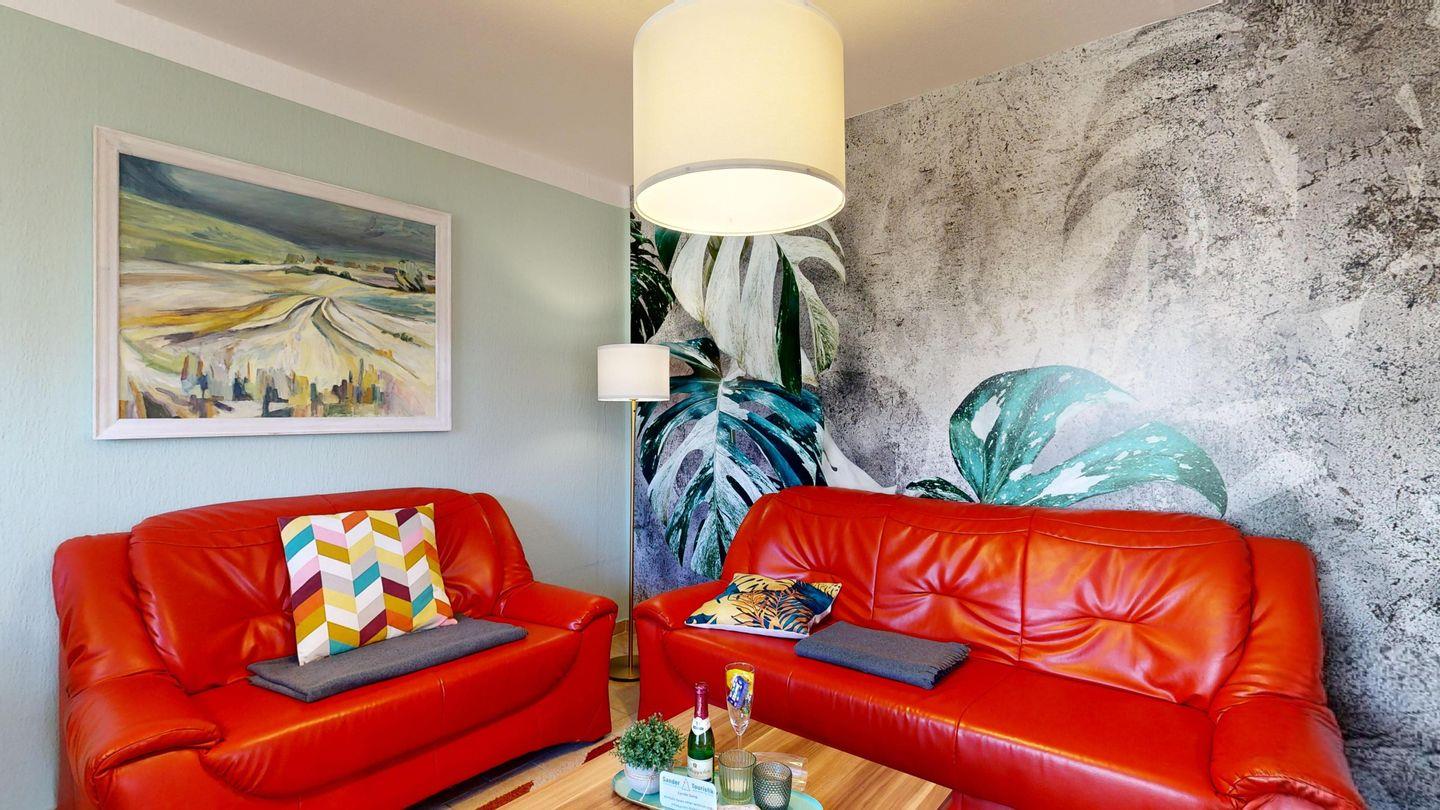 * Wohnzimmer (30 m²): Couchgarnitur, Sat-TV, Radio mit CD, DVD-Player, Internetanschluss