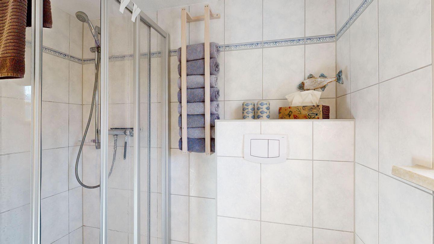 * 1 Badezimmer mit Dusche, WC und Föhn