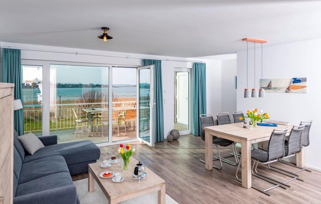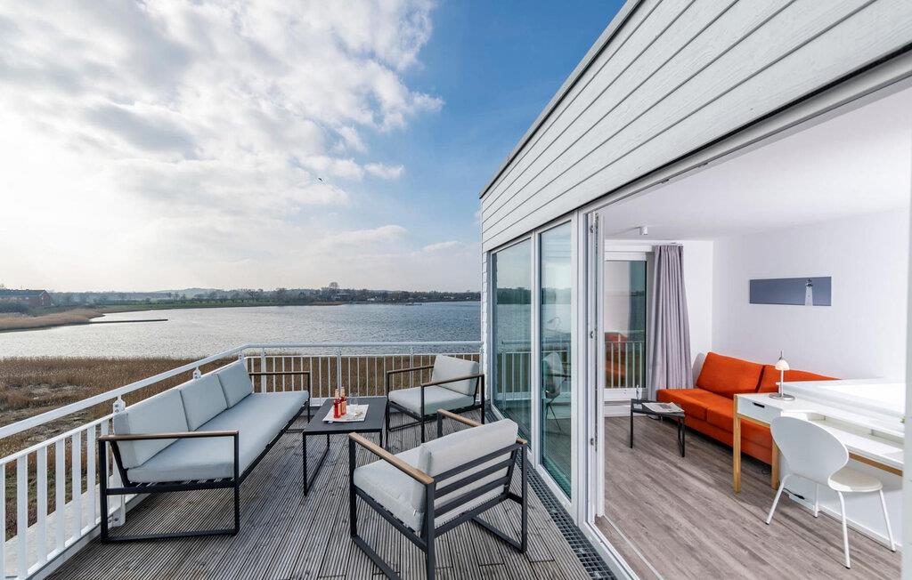 Den dejlige beliggenhed med direkte udsigt til Slien, et privat wellness-område og de rummelige terrasser præger denne ejendom. På solsiden er der landskabsvandring med terrasser i sydvest beliggenhed og fantastiske solnedgange. Dette helt specielle feriehus er omgivet af vand på et smalt næs mellem Slien og sejl- og sportsbådshavnen i ferieområdet Olpenitz. Sandstranden kan nås på få minutter til fods. Højdepunktet er studiet med en tilstødende stor tagterrasse og 360° vandudsigt Hvad enten det er en havnebiograf eller et flyveshow med vilde gæs, ænder og svaner... Her tilbydes underholdning tæt på naturen. En pejs, gulvvarme og et privat wellnessområde sørger for hyggelig hygge i hver sæson. Derudover byder det moderne hjemmeunderholdningsprogram på underholdning på nordiske dage med dårligt vejr. Ankom og nyd Slien og Østersøen på tre. I kan slappe af i dette feriehus. Sommerhusets opholds- og spisestue er oversvømmet med lys. Gennem vinduesfronten fra gulv til loft kan I se den idylliske Sliens bredder, som blidt svajer i Østersøbrisen. Strandskader, ænder, gæs, ren natur. Den direkte tilstødende store terrasse inviterer jer til at blive hængende. I kan nyde idyllen ved Slien, mens I spiser et feriemåltid sammen eller har en hyggelig grillaften. Fantastiske solnedgange er garanteret. Det fuldt udstyrede køkken-alrum lader intet tilbage at ønske. Soveområdet er på første sal. I kan falde i søvn i to soveværelser og vågne op til udsigten over vandet. Det store soveværelse vender ud mod Slien og er indrettet med en dobbeltseng. Det andet soveværelse har udsigt over lystbådehavnen og har to enkeltsenge, der kan skubbes sammen. Også på dette niveau er det store badeværelse med udsigt over havnen og et afslappende spabad. Virkelig frem for alt andet scorer studiet med en betagende udsigt over vandet. Den store finske sauna med tilhørende bruser får wellness-hjerter til at banke hurtigere. En komfortabel sovesofa tilbyder to ekstra sovepladser på dette niveau. Interiøret imponerer med moderne maritimt design og rustikke elementer. Et gæstetoilet i stueetagen giver ekstra komfort. Der er en parkeringsplads foran huset. Og kommer I med cykler, kan I nemt opbevare dem i jeres eget cykelskur. Vores yndlingssted: At sidde på terrassen i solen med en let havbrise... og se vildgæssene tage ud i vandet. Bemærk venligst, at OstseeResort Olpenitz stadig er under opførelse på grund af stor efterspørgsel. Ikke desto mindre opfylder ejendommene allerede en 5-stjernet standard og tilbyder jer et førsteklasses ophold. Ethvert byggearbejde på resortet vil ikke påvirke jeres ferienydelse, hvorfor yderligere rabatter er udelukket.