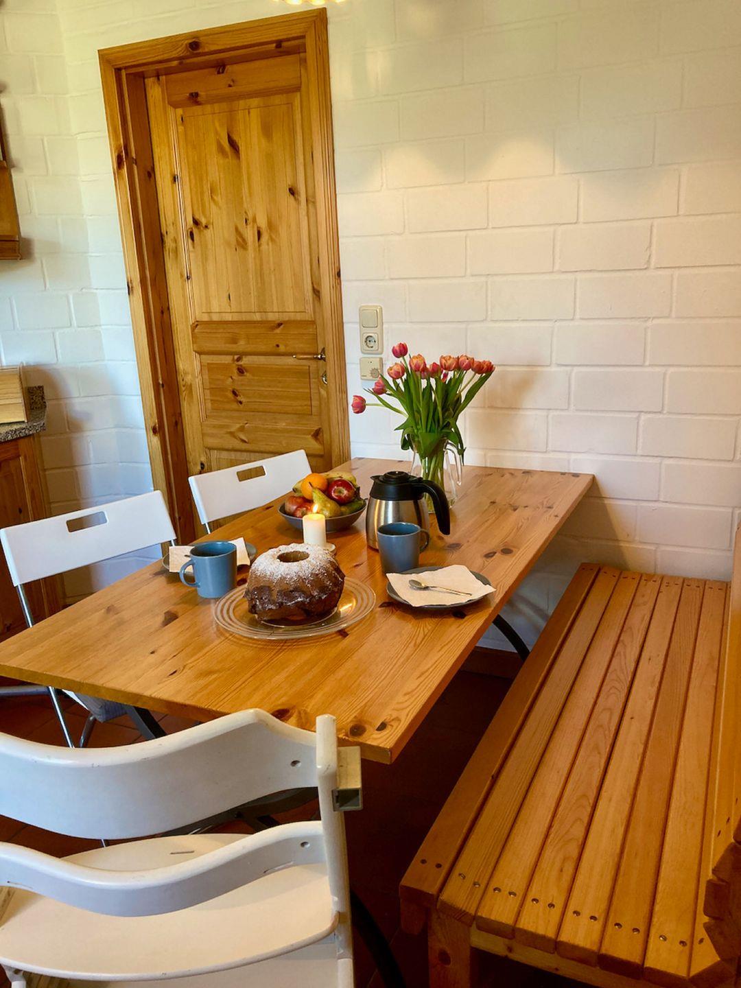 In dem schönen Ferienhaus "Heimathafen" mit 125m² werden Sie Ihren Traumurlaub an der Ostsee und der Flensburger Förde verbringen! Das Wohnzimmer ist gemütlich eingerichtet und verfügt über einen Kamin, der gerade an kälteren Tagen wohlige Wärme spendet. Die Küche ist vollausgestattet, sodass tolle Kochabende veranstaltet werden können. Die Terrasse mit einem anschließenden Garten bietet viel Platz, um die frische Luft zu genießen. Der Strandkorb lädt zum Entspannen ein und unsere kleinen Gäste können in der Strandmuschel spielen. Eine Hängematte ist ebenfalls vorhanden, sodass Sie sich entspannt zurücklehnen und den Alltagstrubel hinter sich lassen können. Das Haus verfügt über 3 Schlafzimmer im Obergeschoss, die mit einem normalen Doppelbett (180x200cm) und zwei kleinen Doppelbetten (140x200cm) eingerichtet sind. Außerdem gibt es im Obergeschoss auch noch einen Balkon, auf dem den ganzen Nachmittag und Abend die Sonne genossen werden kann. Das Badezimmer liegt im Obergeschoss und verfügt über eine Dusche und eine Badewanne. Im Erdgeschoss gibt es zusätzlich noch ein Gäste-WC. Für längere Aufenthalte stehen Ihnen eine Waschmaschine und ein Trockner zur Verfügung. Vor dem Haus gibt es 3 PKW-Stellplätze. Das Ferienhaus "Heimathafen" liegt nur wenige Gehminuten vom idyllischen Hafen Langballigau sowie dem nahegelegenen Wald (inklusive Steilküste) entfernt. Der nächste Supermarkt liegt im Dorf in Langballig und ist mit dem Auto sehr schnell zu erreichen. Ein Ausflug in die nächstgelegene Stadt Flensburg in nur 17km Entfernung oder nach Dänemark bietet sich sehr an. Urlaub pur - im "Heimathafen Langballigholz"!