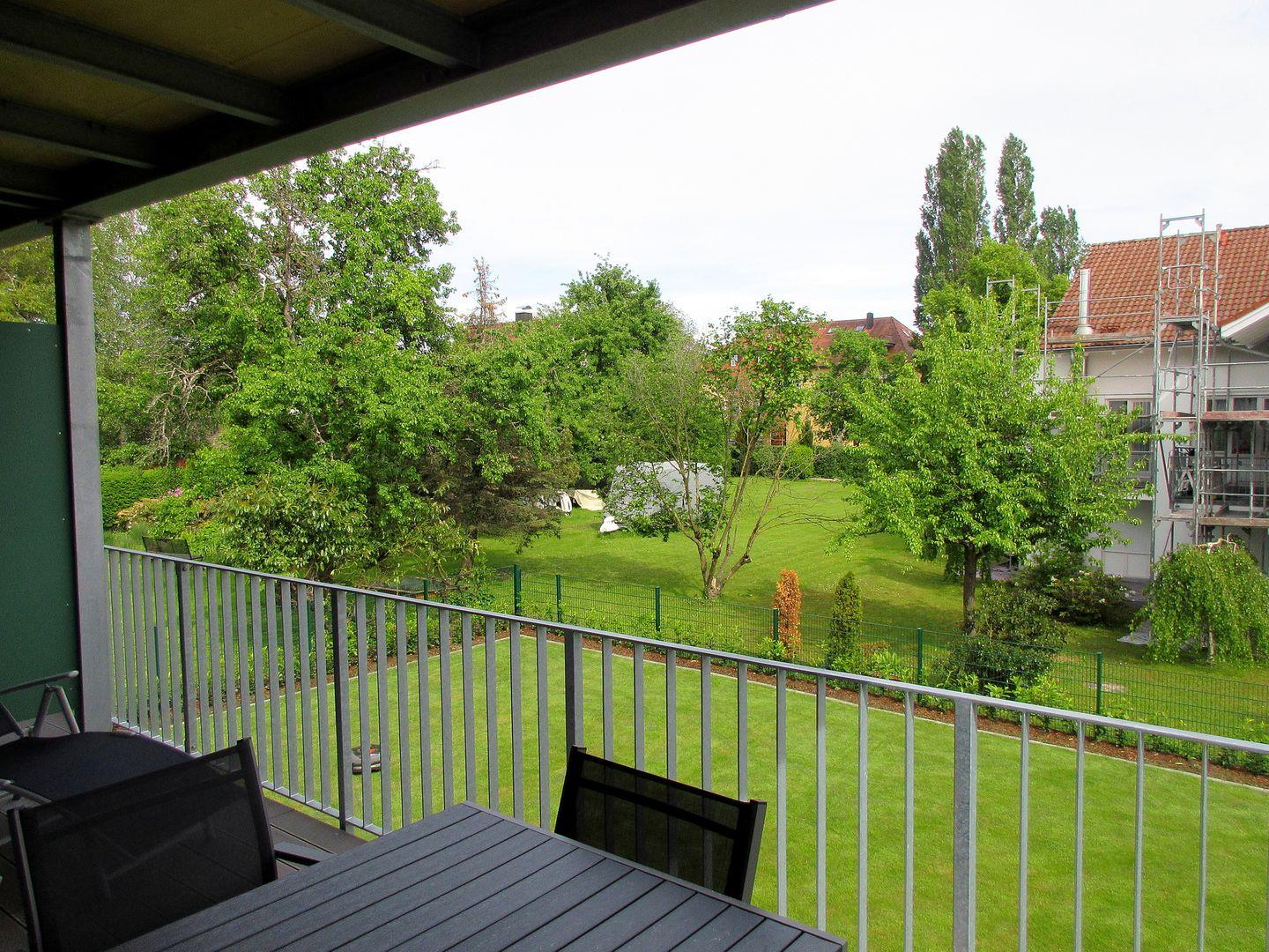 Die Wohnung bietet einen Wohnraum mit Sitz- und Essecke sowie eine offene, gut ausgestattete Küche. Der Balkon lädt dazu ein, im Grünen zu frühstücken, sich auf einer Liege zu entspannen oder den Tag mit einem Glas Bodensee-Wein ausklingen zu lassen.
