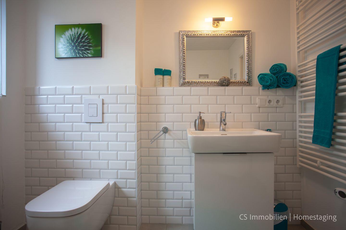 Das moderne Tageslichtbad ist mit einem Handtuchheizkörper ausgestattet. Das Schlafzimmer verfügt über ein bequemes Doppelbett (180 x 200 cm), und bei Bedarf kann im Wohnzimmer eine weitere Schlafgelegenheit eingerichtet werden, sodass die Wohnung Platz für bis zu drei Personen bietet.