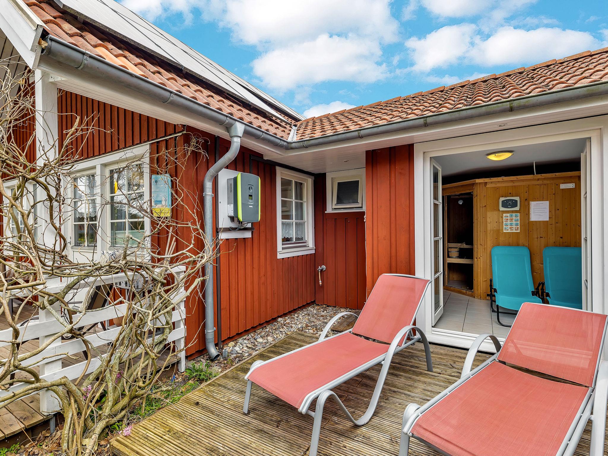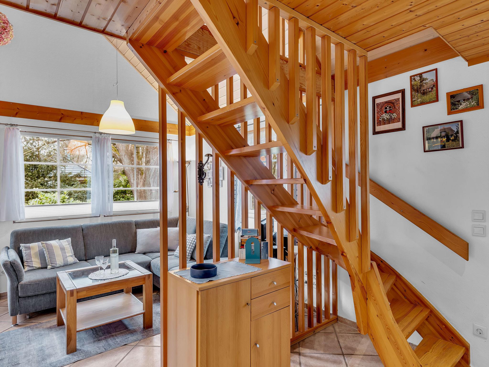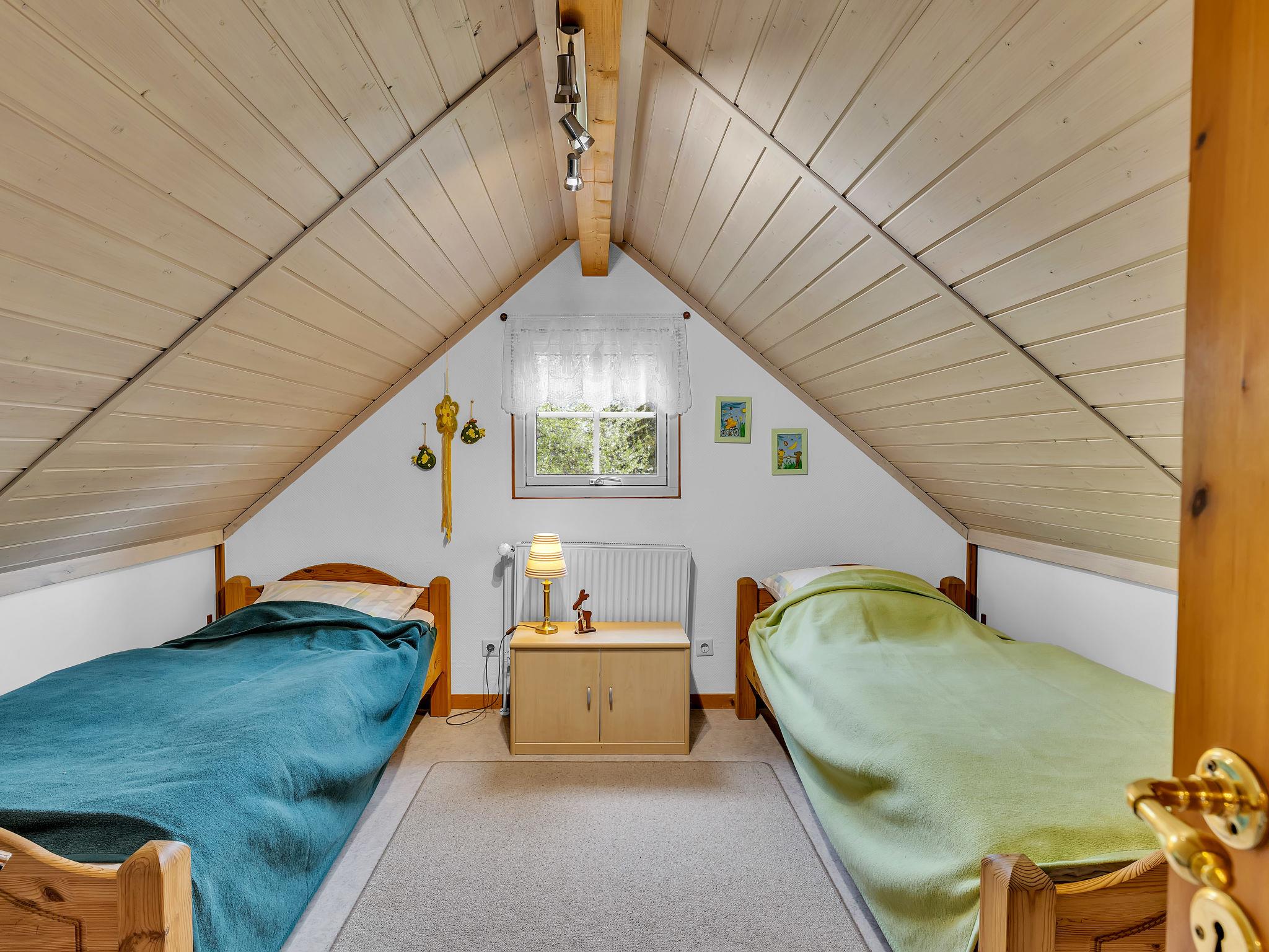4-room house 80 m2 on 2 levels. Object suitable for 6 adults. Bright, cosy furnishings: living/sleeping room with 1 double sofabed (150 cm, length 200 cm), dining table, satellite TV and radio. Exit to the terrace. 1 room with 1 double bed. 1 room with 1 bed and 1 pull-out bed. Open kitchen (oven, dishwasher, 4 ceramic glass hob hotplates, toaster, kettle, microwave, electric coffee machine). Shower/WC. Electric heating. Upper floor: 1 room with sloping ceilings with 2 beds. Terrace furniture. Facilities: sauna, children's high chair, baby cot for up to 2 year olds. Internet (WiFi, extra). Please note: non-smoking house. Smoke alarm.