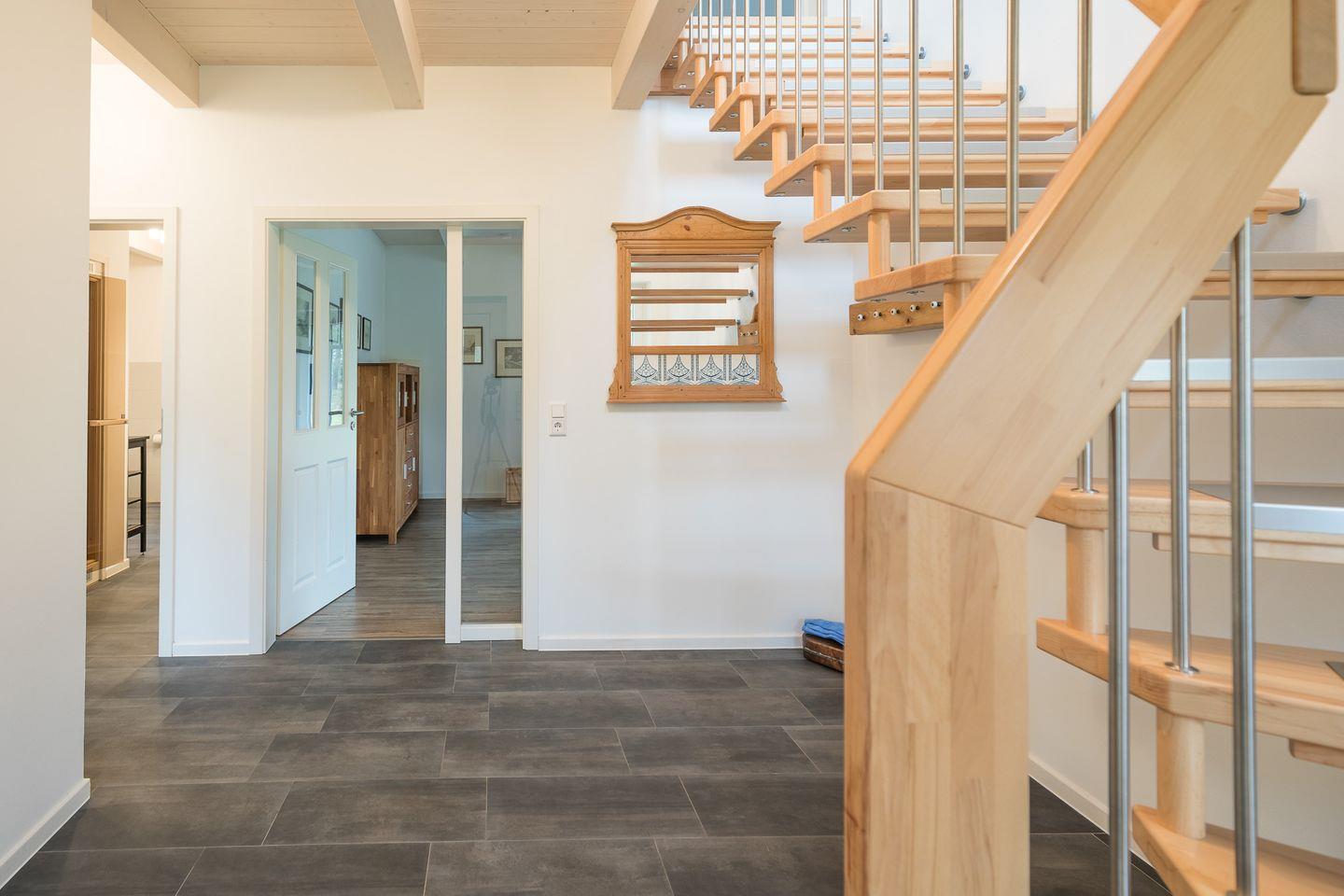 Das ca. 120 qm große Ferienhaus ist modern und exklusiv im skandinavischen Charme eingerichtet. Die drei Schlafzimmer im Obergeschoss bieten Platz für bis zu 6 Personen. Ein Schlafzimmer wurde mit zwei Einzelbetten ausgestattet, die anderen jeweils mit einem Doppelbett (180 x 200). Ihre Betten sind bei Ihrer Ankunft liebevoll bezogen. Eines der Schlafzimmer ist zusätzlich mit einem TV ausgestattet.