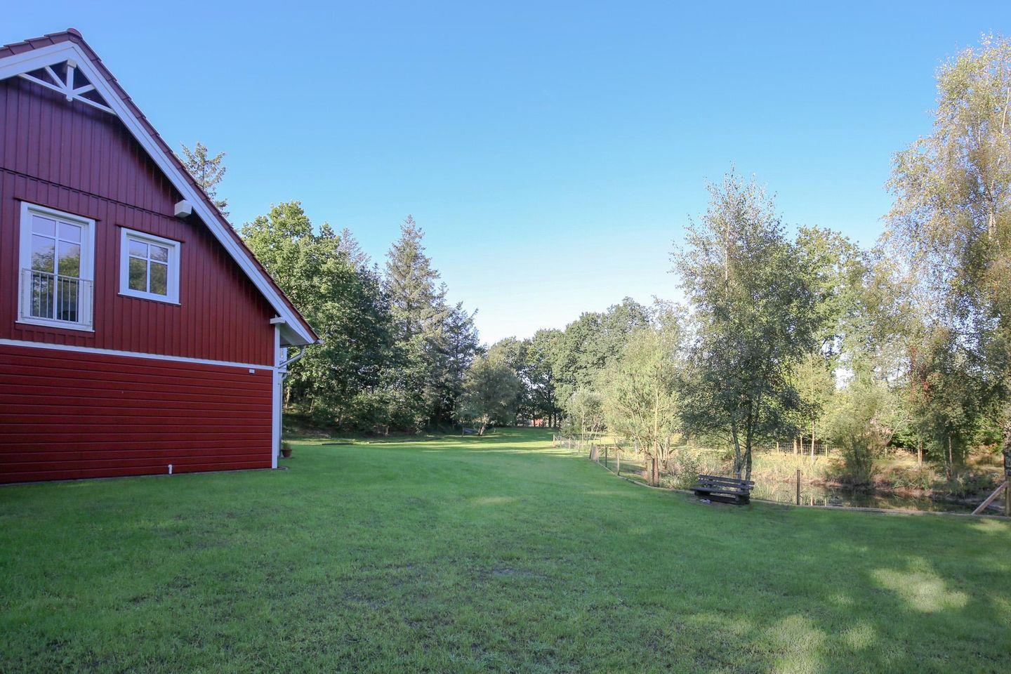Ruhe, Idylle, viel Natur: Unser hochwertiges und luxuriöses Ferienhaus im skandinavischen Stil befindet sich auf einem sehr großen, eingewachsenen Grundstück. Der Seerosenteich, viele idyllische Rückzugsorte, die Lage direkt an einem Wald: hier sagen sich Hase und Igel jeden Abend „Gute Nacht“.