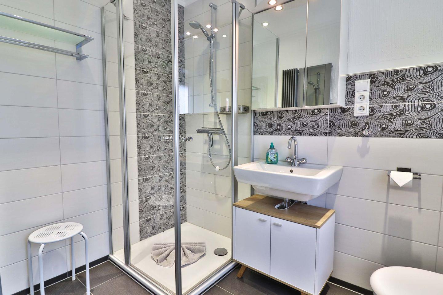 Das Badezimmer verfügt über eine Dusche, Waschbecken, WC, Spiegel, Haartrockner und ist mit einem Fenster ausgestattet. Jeweils ein Set Handtücher und Bettwäsche liegen für Sie bereit. Die Wohnung ist als Nichtraucherwohnung ausgewiesen und mit Rauchmeldern ausgestattet.