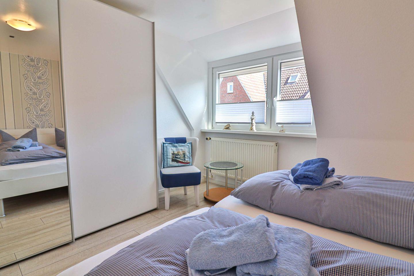 Die Ferienwohnung 3 befindet sich im ersten Stock des Hauses „Kiek rin bi Kati“ in ruhiger Lage auf Langeoog und bietet auf 60 m² ausreichend Platz für bis zu vier Personen. Die Wohnung verfügt über insgesamt drei Zimmer, darunter zwei separate Schlafzimmer, wodurch sie sich sowohl für Familien mit Kindern als auch für Paare oder kleine Gruppen eignet. Die Unterkunft ist eine Nichtraucherwohnung.