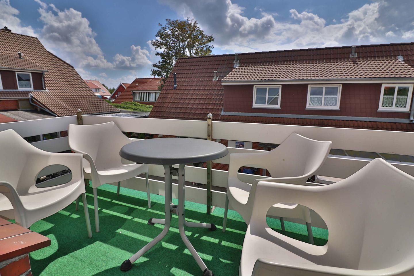 Ein besonderes Highlight der Ferienwohnung ist der große Balkon mit Südausrichtung, auf dem Gäste Gartenmöbel und einen Sonnenschirm vorfinden und die frische Inselluft genießen können.