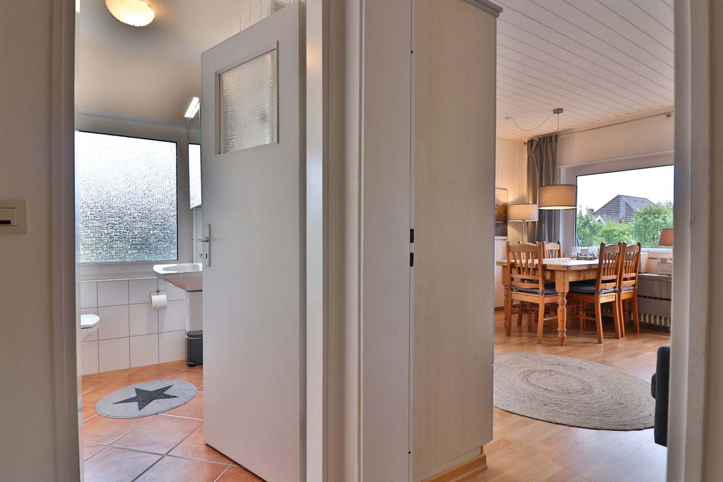 Die Unterkunft Salini bietet Ihnen ein komfortables und durchdacht ausgestattetes Domizil auf Langeoog. Im ersten Stock eines gepflegten Hauses im Polderweg 35 gelegen und mit einer Wohnfläche von 50 m², richtet sich die Unterkunft sowohl an Paare als auch an Familien und kleine Gruppen bis maximal vier Personen. Die Nichtraucherwohnung überzeugt durch eine sorgfältig abgestimmte Kombination aus Funktionalität und Gemütlichkeit und bietet zahlreiche Ausstattungsmerkmale, die Ihren Aufenthalt angenehm gestalten.