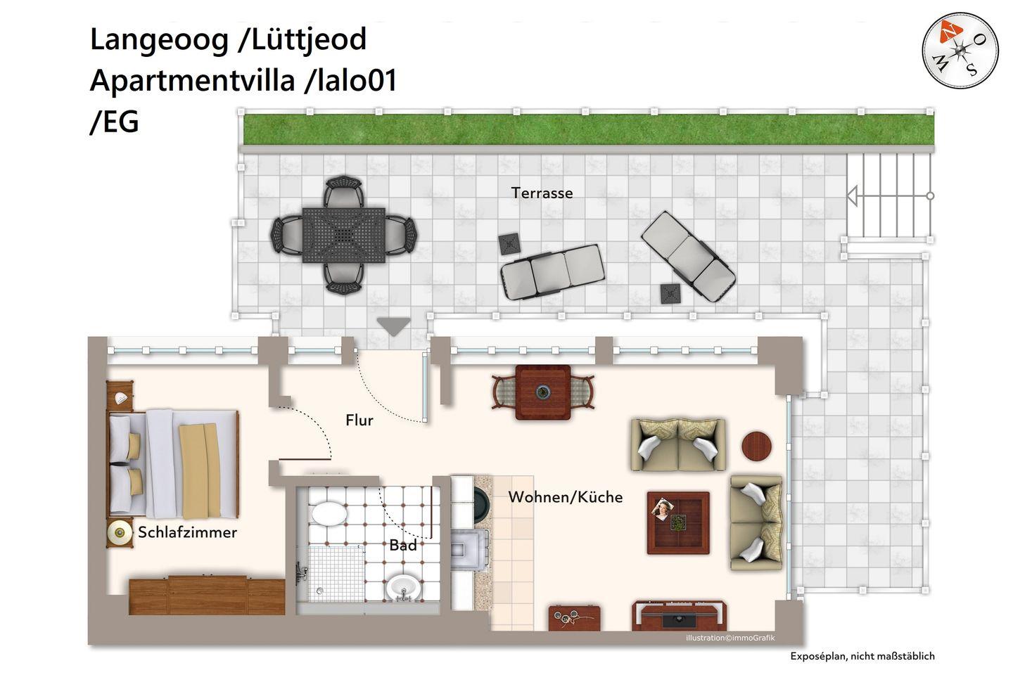Tolles Apartment mit 44 m² großer Terrasse auf der Ostfriesischen Insel Langeoog