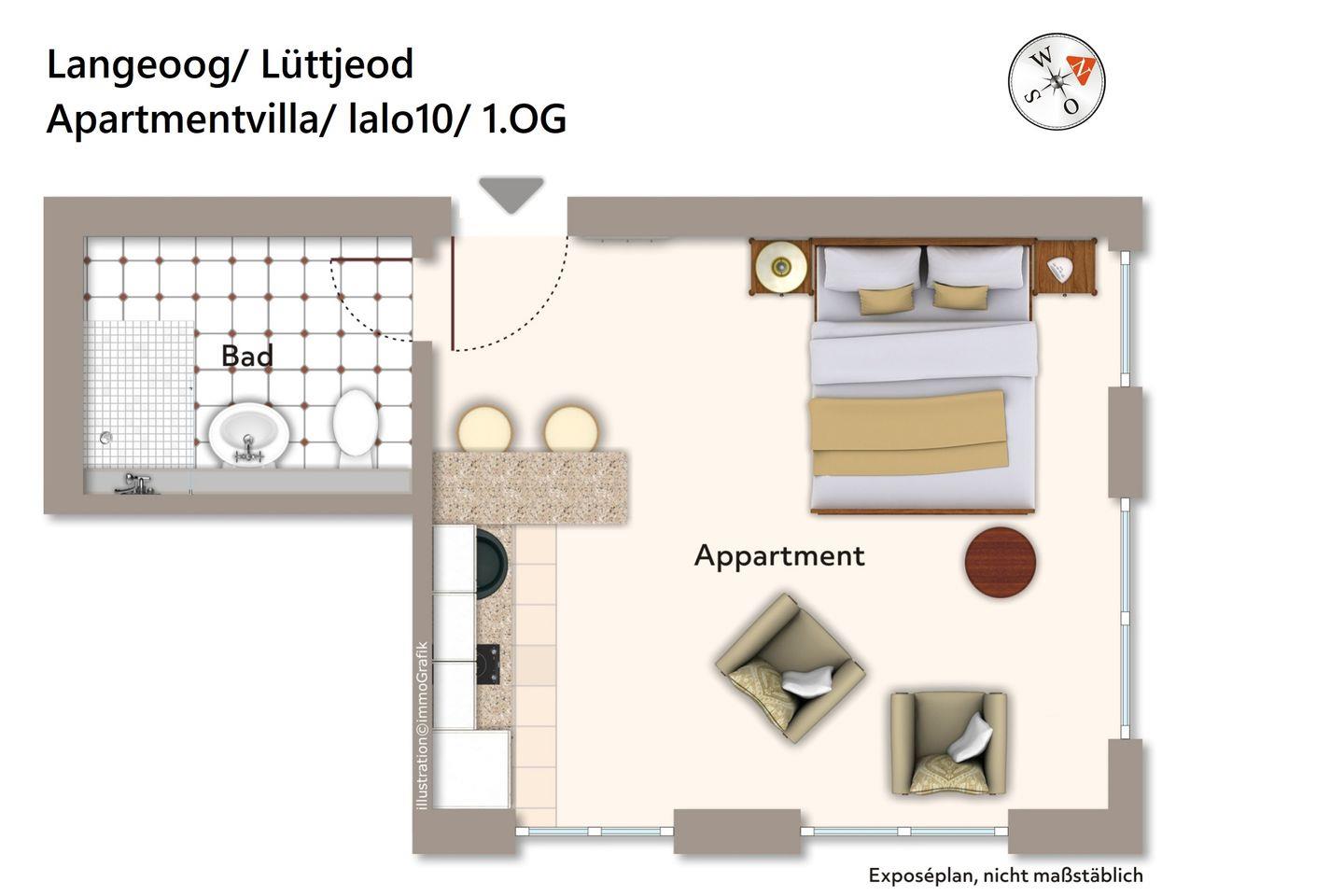 Tolle 1-Raum Ferienwohnung für Paare in Top-Lage im Inselstädtchen von Langeoog