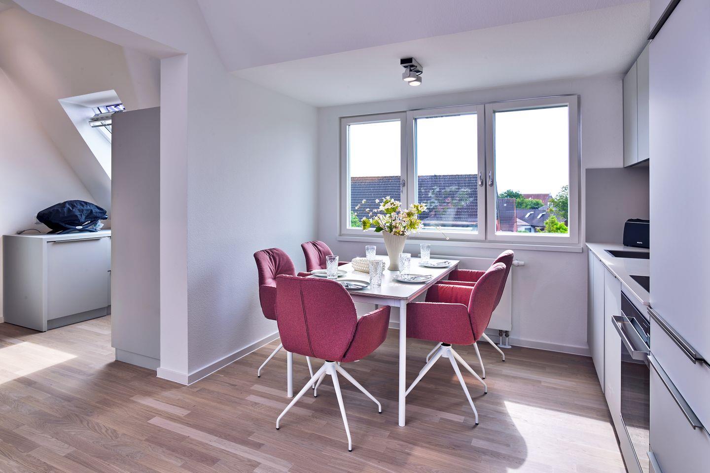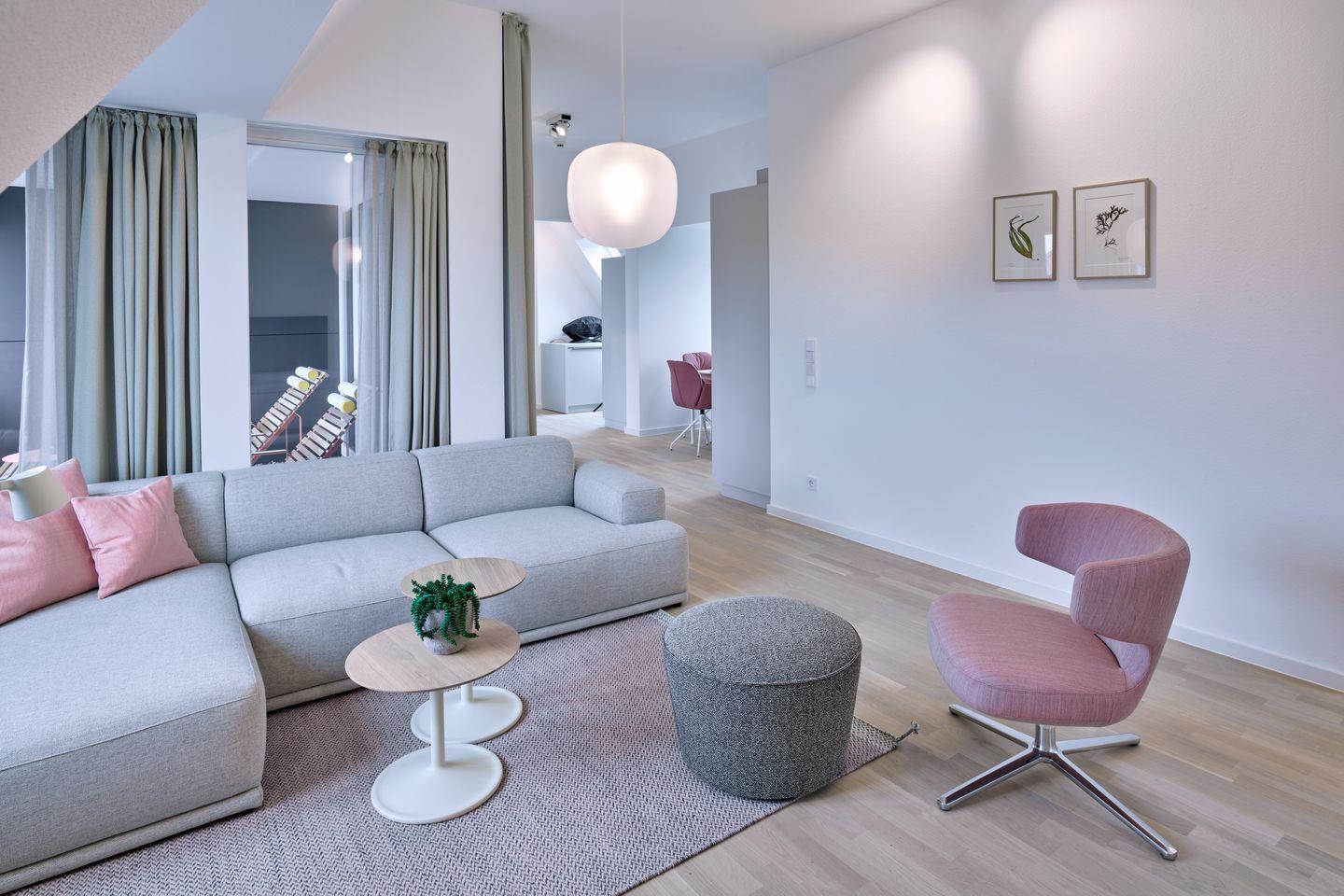 Das geschmackvoll eingerichtete Nichtraucher-Apartment verfügt über kostenfreies WLAN, bodentiefe Fenster und eine voll ausgestattete offene Küche mit Geschirrspüler, Kühlschrank mit Gefrierfach, Filterkaffeemaschine, Toaster, Wasserkocher, Backofen und 4-Felder Induktionsherd sowie über einen behaglichen Wohn-Essbereich. Im Wohnbereich befinden sich ein SMART-TV (43 Zoll) und ein Bluetooth-Lautsprecher.