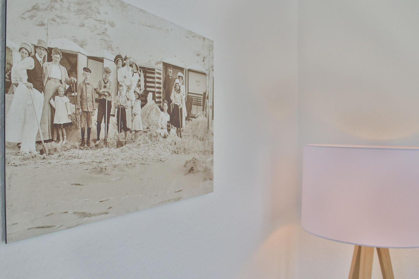 Vom Wohnbereich aus gelangen Sie durch eine Tür auf die Terrasse. Hier können Sie die gesunde Meeresluft genießen, das Meeresrauschen hören und im Strandkorb entspannte Sonnenstunden verbringen. Der Garten steht allen Gästen des Hauses zur gemeinsamen Nutzung zur Verfügung.