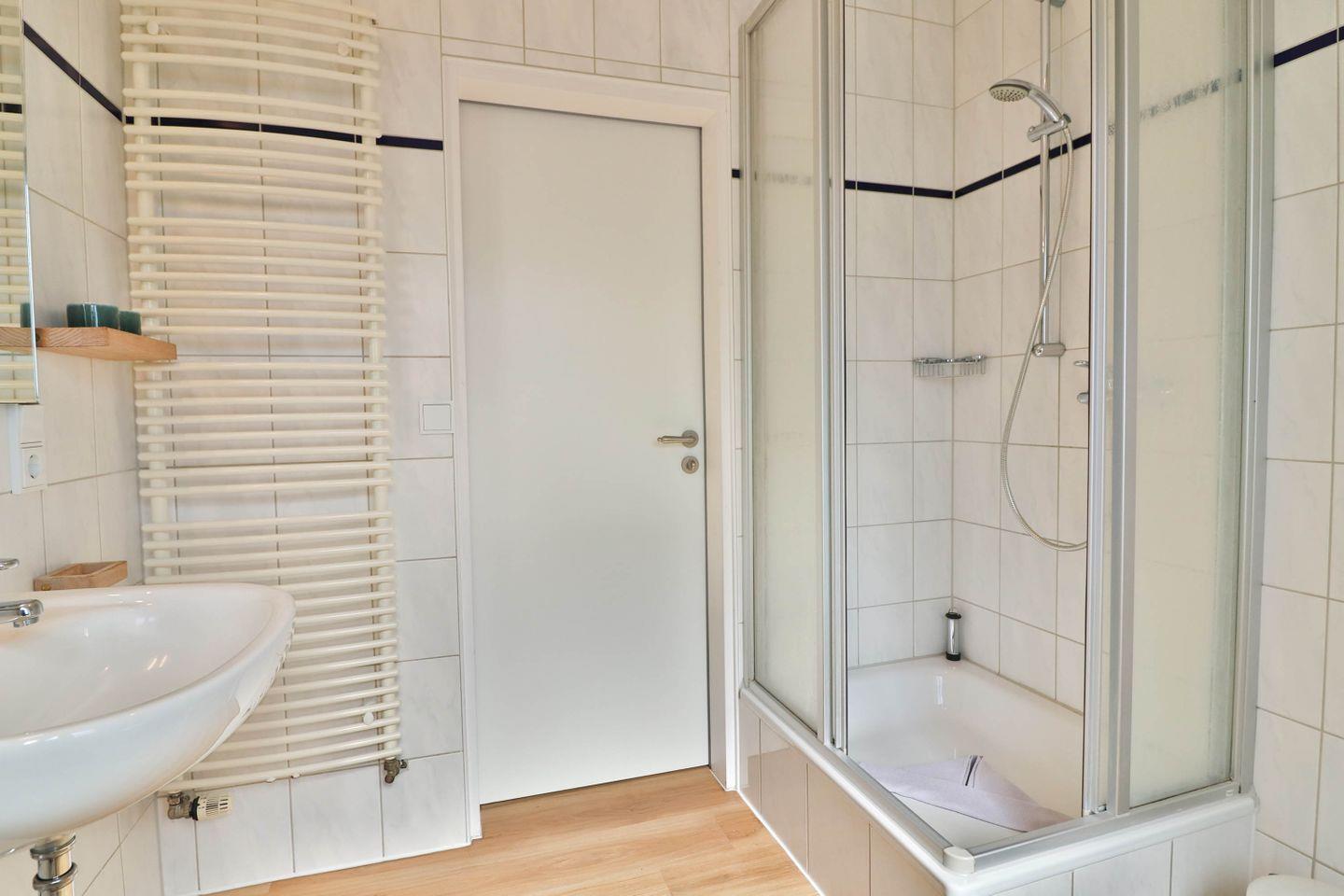 Im Badezimmer erwartet Sie eine Dusche sowie ein WC und ein Waschbecken. Eine Handtuchheizung sorgt für kuschelig warme Handtücher nach dem Duschen.