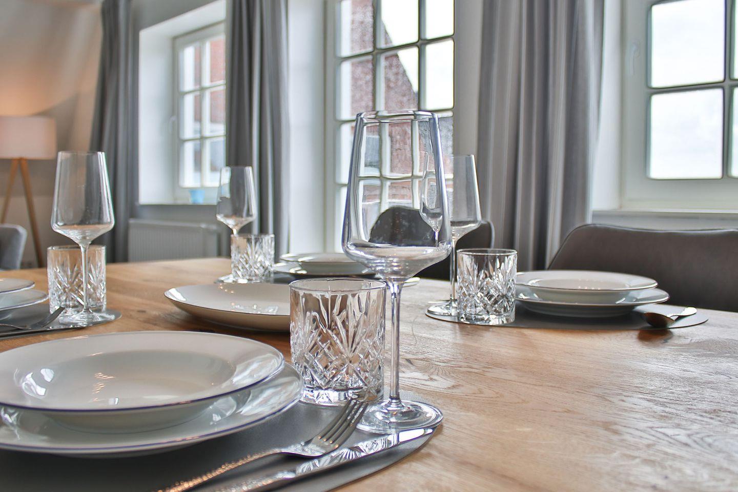 Die voll ausgestattete Küche lässt keine Wünsche offen. Mit Induktionsfeld, Backofen, Spülmaschine, Kühlschrank mit Gefrierfach, Mikrowelle, Kaffeemaschine, Wasserkocher, Toaster, Eierkocher, Handmixer und Waffeleisen haben Sie alles, was Sie zum Kochen und Backen benötigen. Ein separater kleiner Tisch mit Barhockern lädt zu einem schnellen Frühstück oder einer Tasse Kaffee ein.