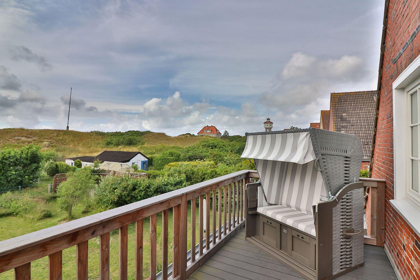 Ein besonderes Highlight der Wohnung ist der große Balkon, auf dem Sie im Strandkorb den traumhaften Ausblick in die umliegenden Dünen und auf den Wasserturm genießen können, das Wahrzeichen der Insel. Hier können Sie in völliger Ruhe und Privatsphäre Ihre Tage ausklingen lassen und die frische Meeresbrise einatmen. Je nach Windrichtung können Sie sogar das Meer rauschen hören.