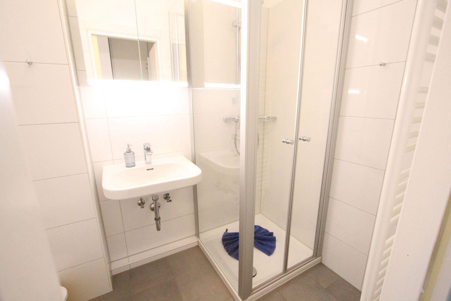 Badezimmer: Dusche und WC.