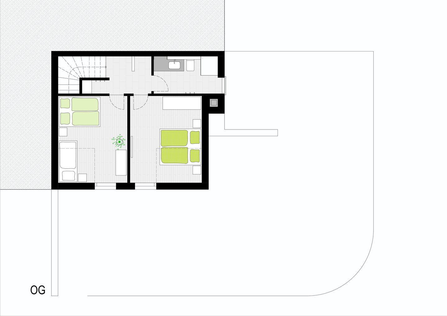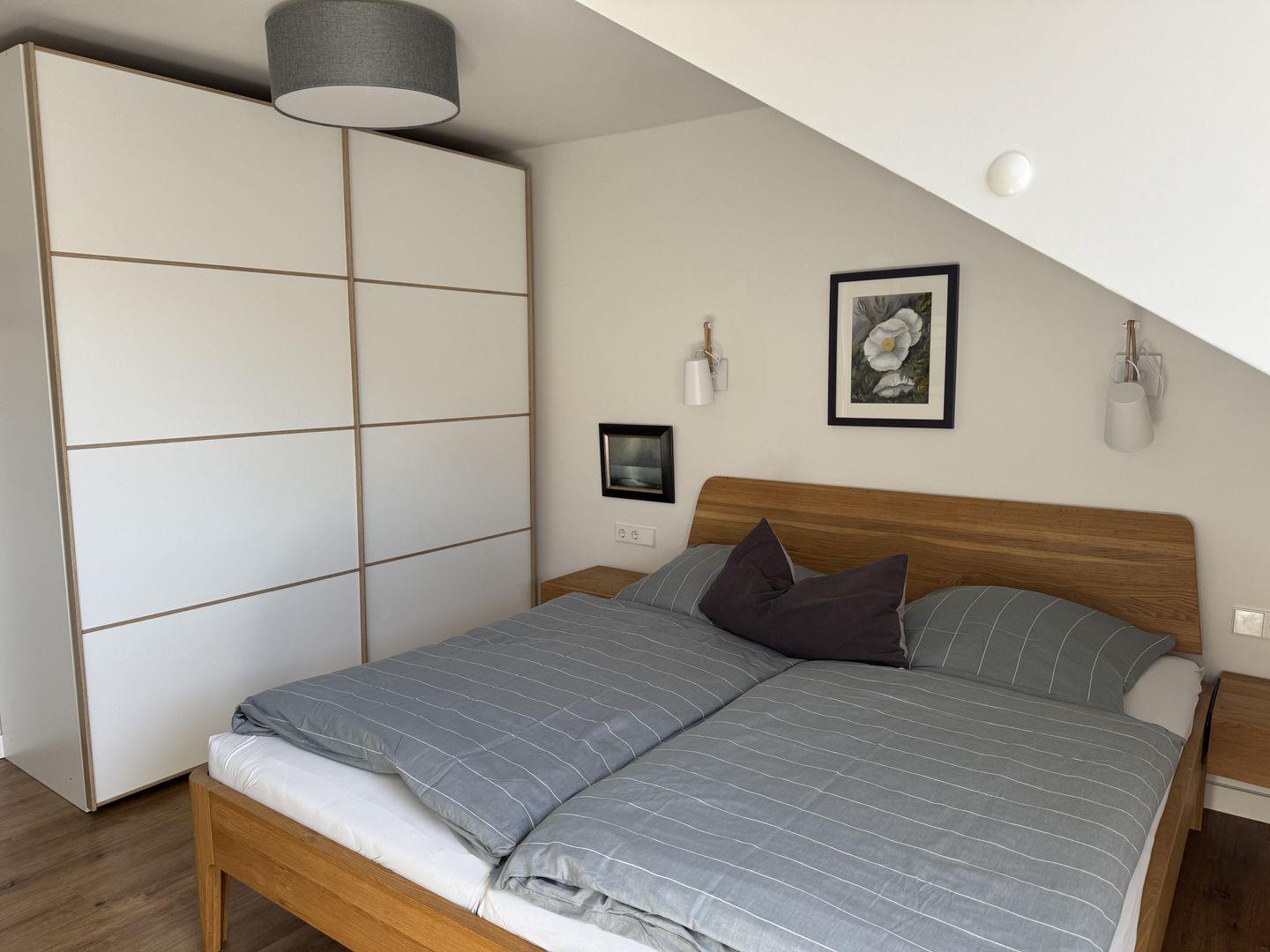 OG: Schlafzimmer (Doppelbett, TV), Schlafzimmer (Einzelbett 90 x 200 cm, Bett 140 x 200 cm), Badezimmer (Dusche, WC, Föhn) Kinderbett und Hochstuhl auf Anfrage, Verdunklung Rollläden, WLAN