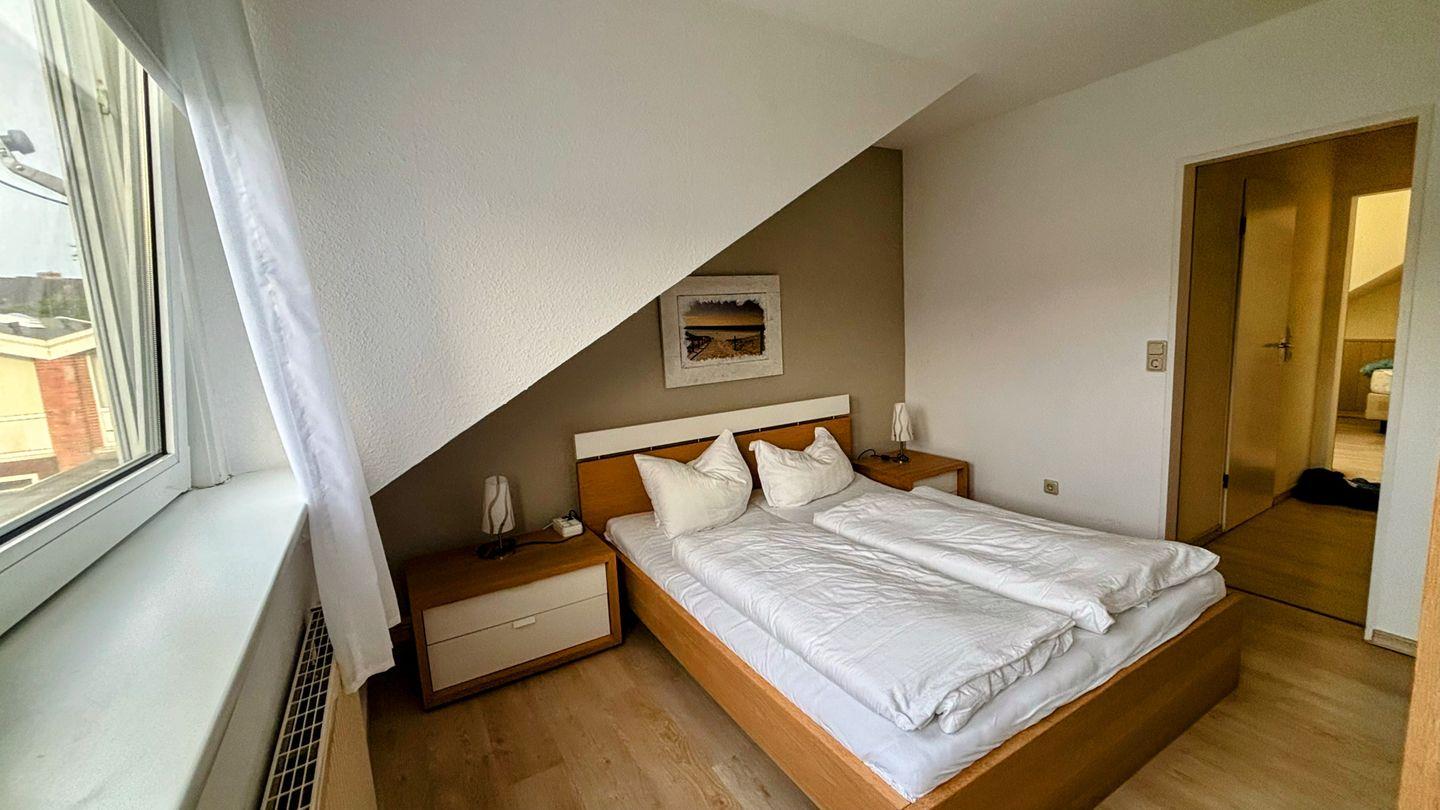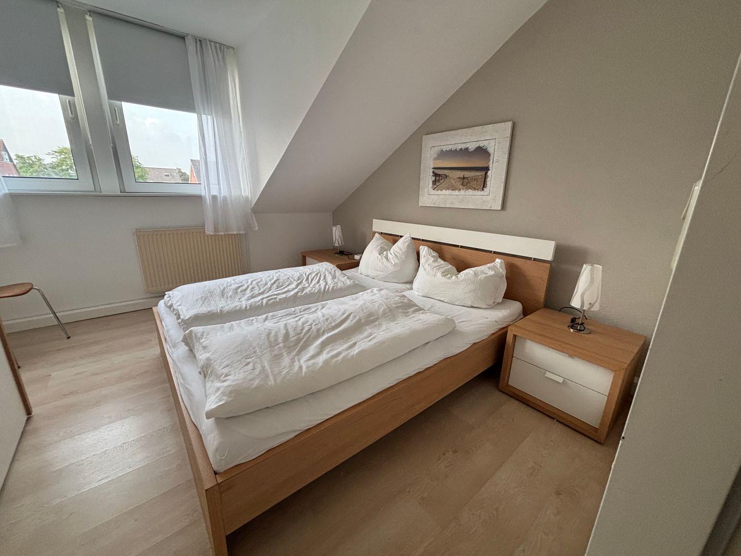 1.OG: 1 Schlafzimmer mit Doppelbett (160 cm x 200 cm); 1 Schlafzimmer mit 2 Einzelbetten (90 cm x 200 cm); modernes Tageslichtbad mit geräumiger Dusche und WC.