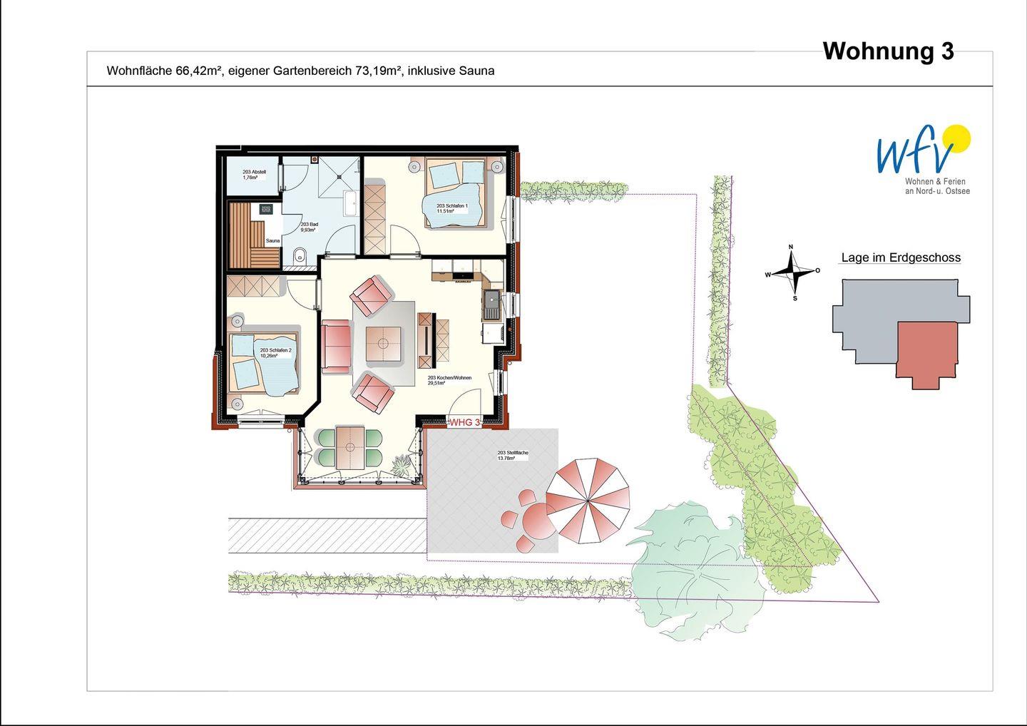 Das Bonbon der Ferienwohnung ist die große möblierte Terrasse mit Garten. Das beste Ambiente für Erholung bei frischer Meeresbrise - ein herrliches Urlaubsgefühl!