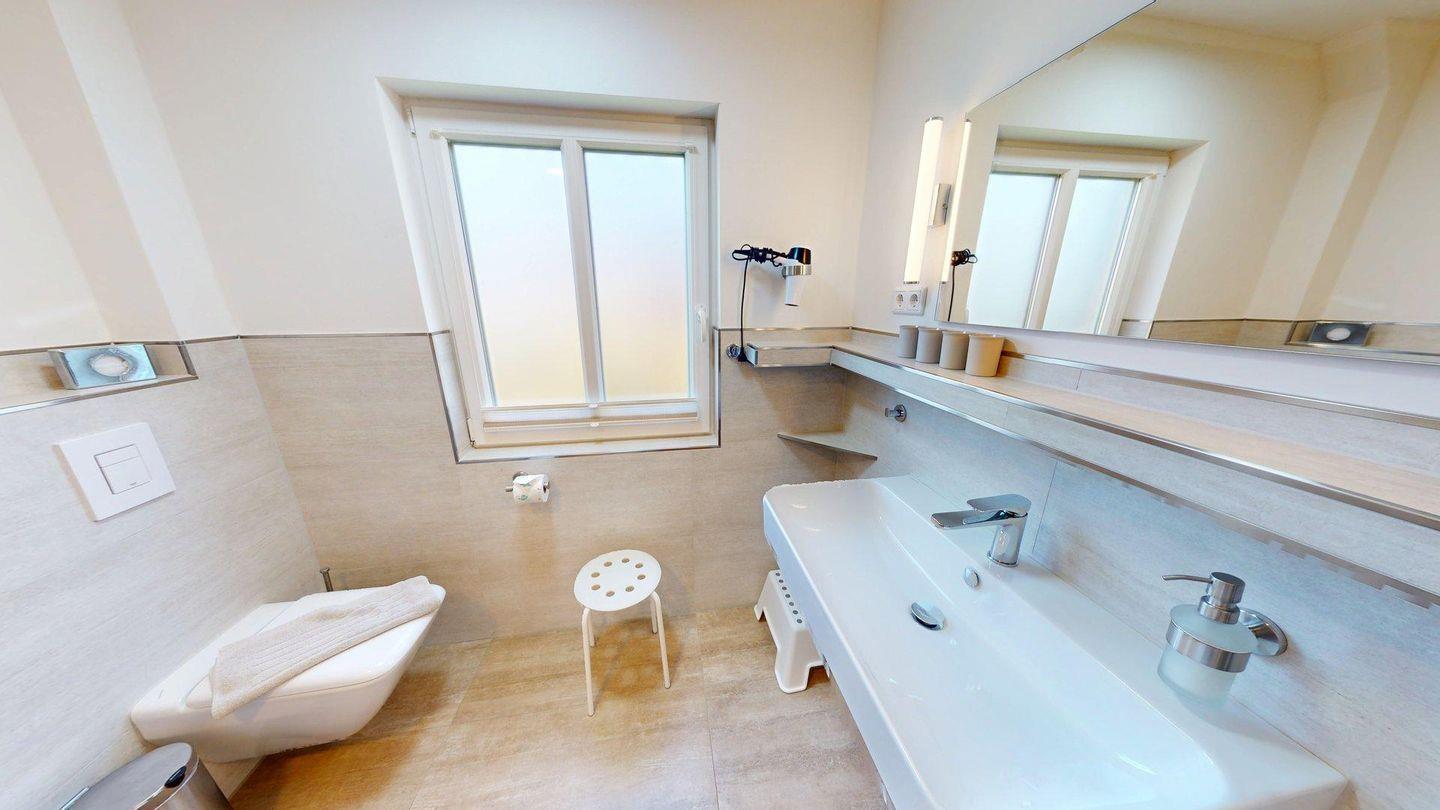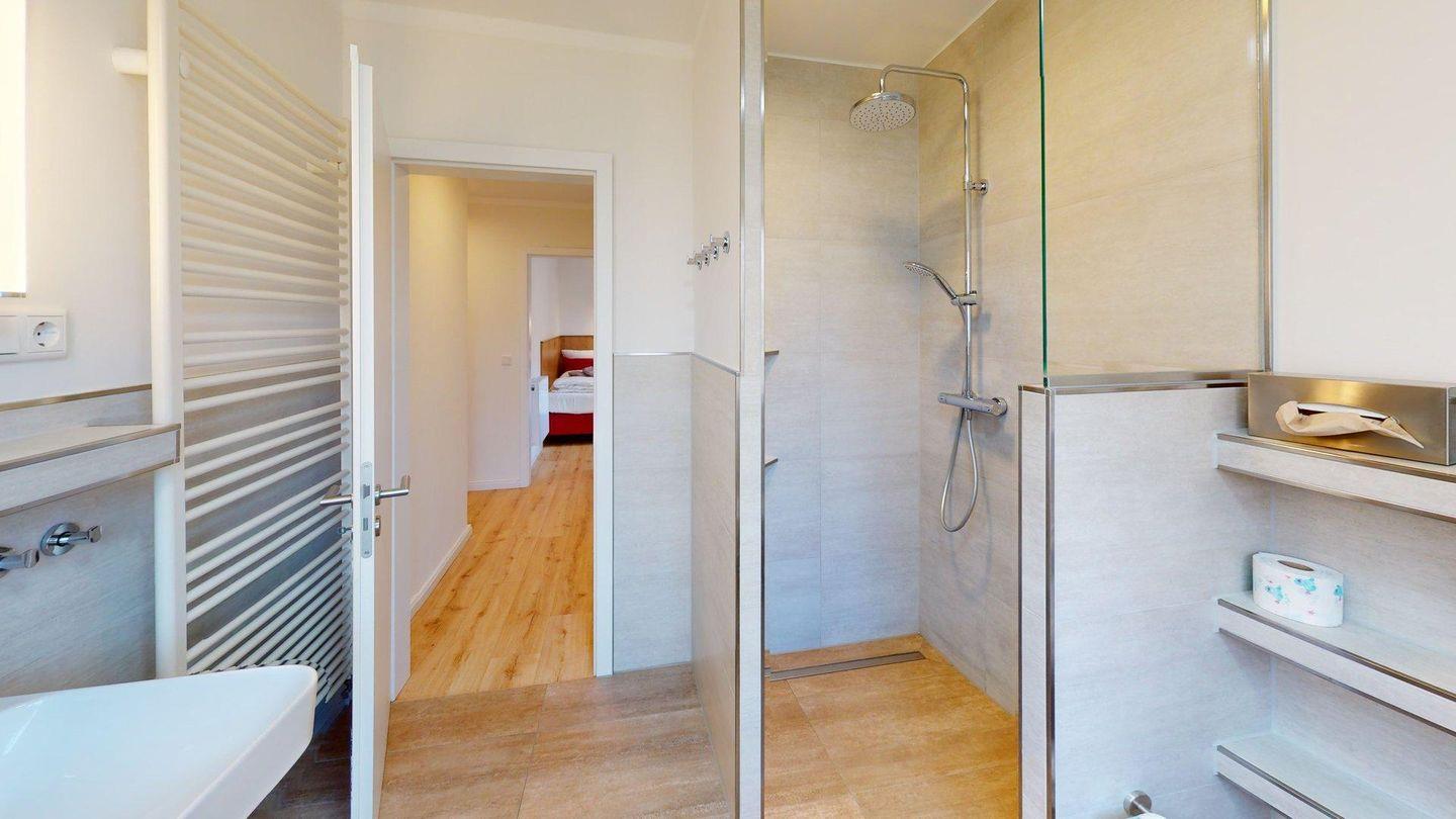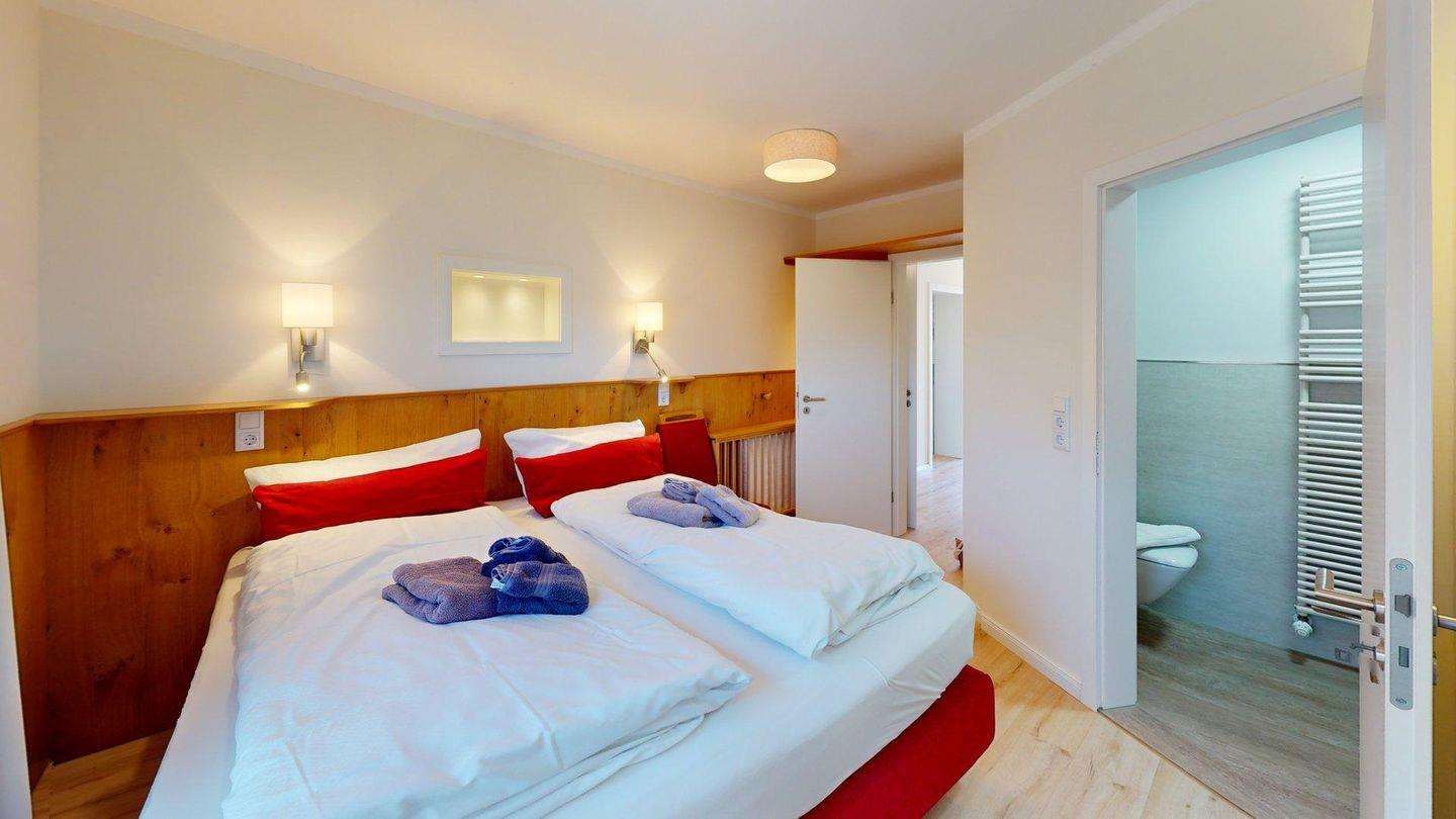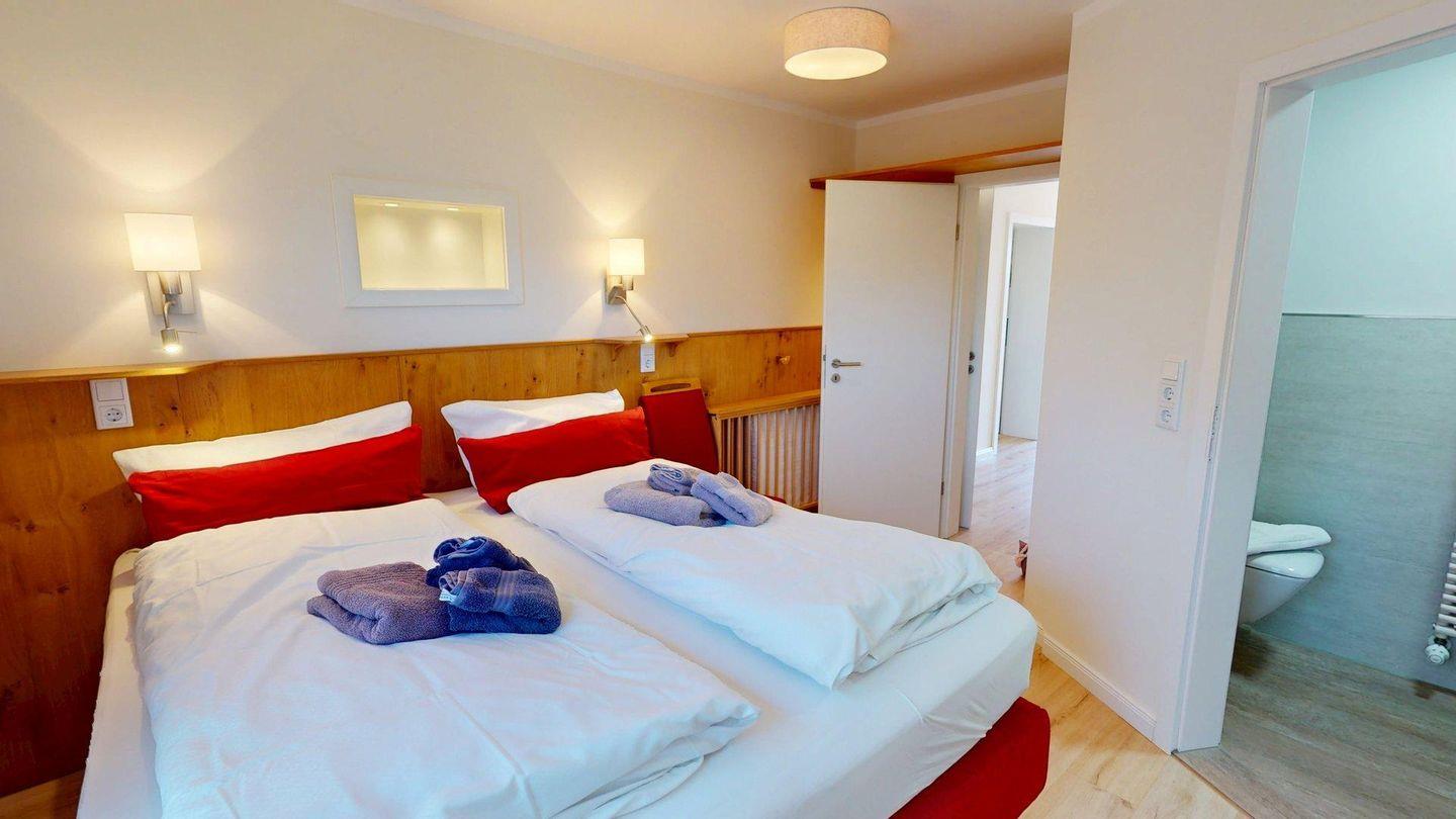 Die Ferienwohnung ist sehr großzügig geschnitten - Sie haben eine getrennte, voll ausgestattete Küche mit Essbereich. Das Wohnzimmer mit Couchecke und Kaminofen lädt zu kuscheligen Stunden ein. Die angrenzende Terrasse mit der gemütlichen Sitzecke und den Sonnenliegen sowie der Garten bietet Platz für gemeinsame Stunden. Das Elternschlafzimmer mit Boxspringbett und eigenem Bad hat einen schönen Blick ins Grüne. Die weiteren Schlafzimmer haben zum einen ein Doppelboxspringbett und zum anderen 2 Einzelboxspringbetten - hierzu gehört das zweite Duschbad. Die Tageslichtbäder mit Fußbodenerwärmung bieten begehbare Duschen sowie Waschtische mit großen Spiegeln und WC.