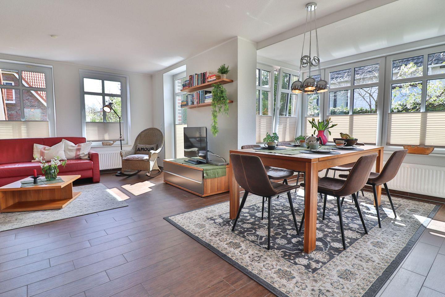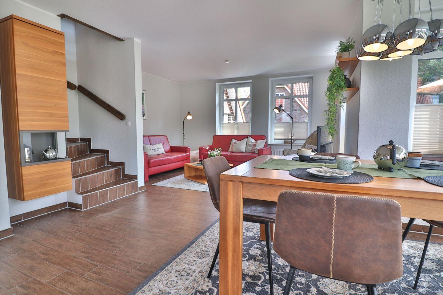 Willkommen im Tweethus, Ihrem idealen Urlaubsdomizil auf der malerischen Insel Langeoog. Diese wunderschöne Ferienunterkunft bietet mit einer Gesamtfläche von 95 m² ausreichend Platz für bis zu sechs Personen, perfekt geeignet für Familien oder Gruppen von Freunden, die einen erholsamen Aufenthalt an der Nordsee verbringen möchten. Die Unterkunft besteht aus insgesamt sechs Zimmern, darunter drei komfortable Schlafzimmer und zwei moderne Badezimmer.