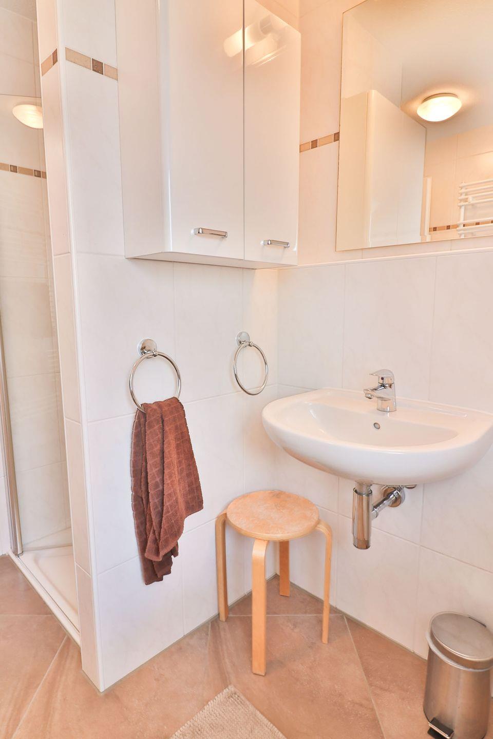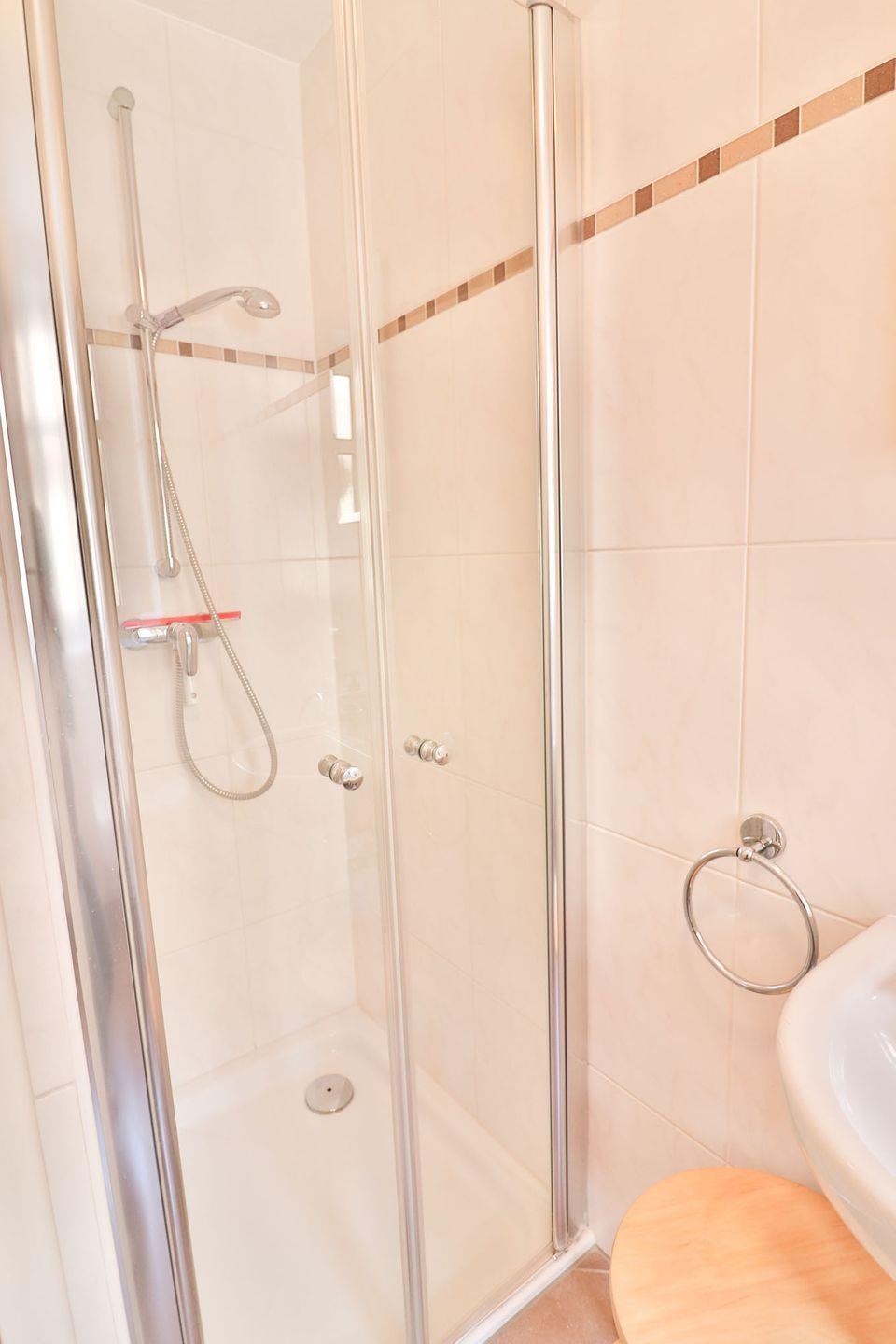 Das Haus bietet Ihnen drei helle und freundliche Schlafzimmer, die zum Entspannen und Wohlfühlen einladen. Verdunkeln können Sie alle Schlafzimmer mit Vorhängen. Zwei Schlafzimmer sind mit Doppelbetten (je 160 x 200 cm) und eines mit zwei gleich großen Einzelbetten (je 80 x 200 cm) ausgestattet. In einem der Doppelzimmer gibt es einen zusätzlichen Fernseher. Die beiden Badezimmer verfügen über modernste Sanitäranlagen, inklusive je einer Dusche. Im oberen Bad befinden sich zusätzlich Waschmaschine und der Trockner, die Sie kostenfrei nutzen können.